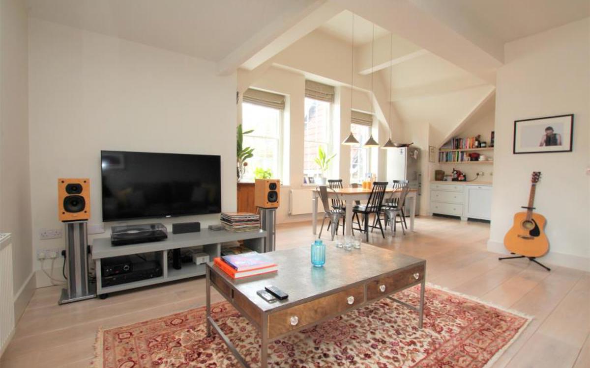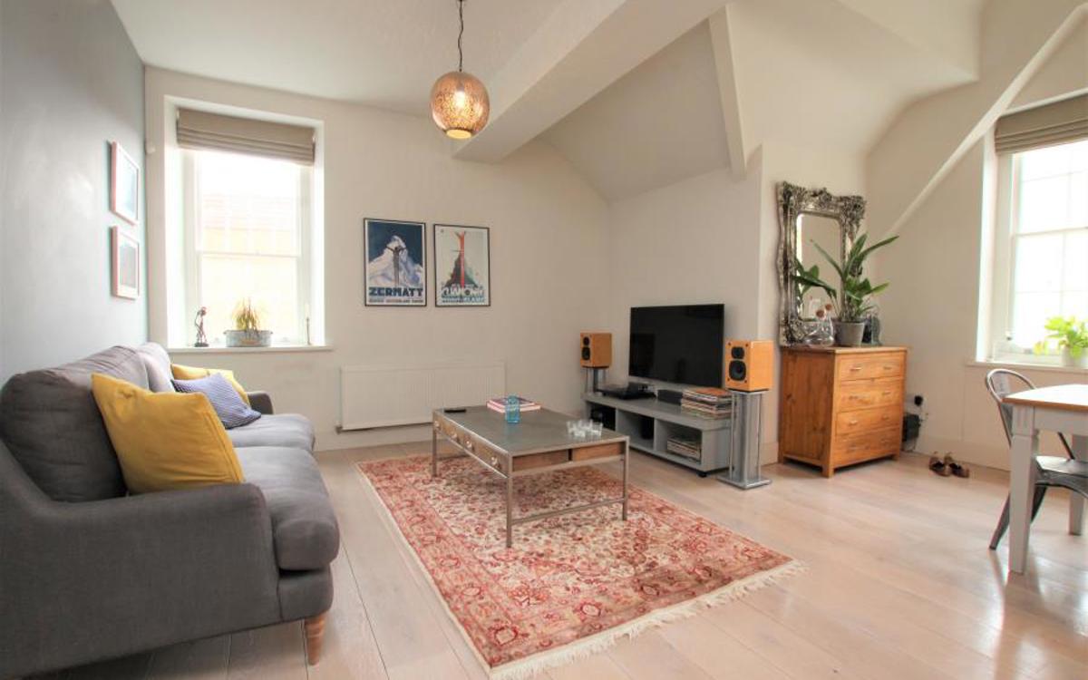 A simply stunning three bedroom first floor flat in Kingsdown set within a converted former church hall. Benefits include: hardwood flooring, sash windows, high specification finish throughout, gas central heating. The impressive communal entrance lobby has space for push bikes. The interior presents: entrance hall with telephone entry system and alarm, loft hatch t...