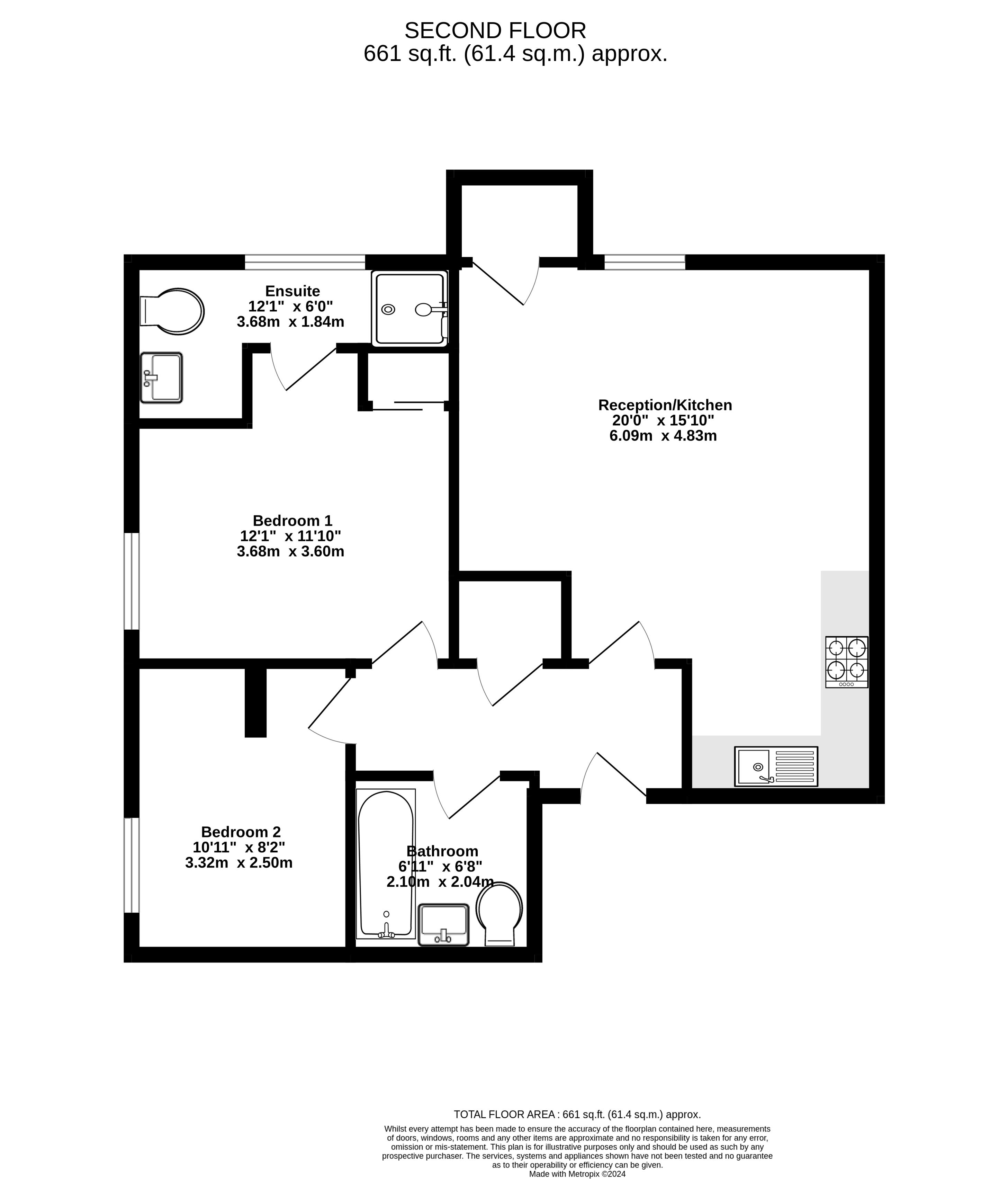 Both bedrooms are doubles (one is a small double) and the main bedroom benefits from built in wardrobes and has an ensuite shower room. There is also a modern family bathroom with shower over bath.