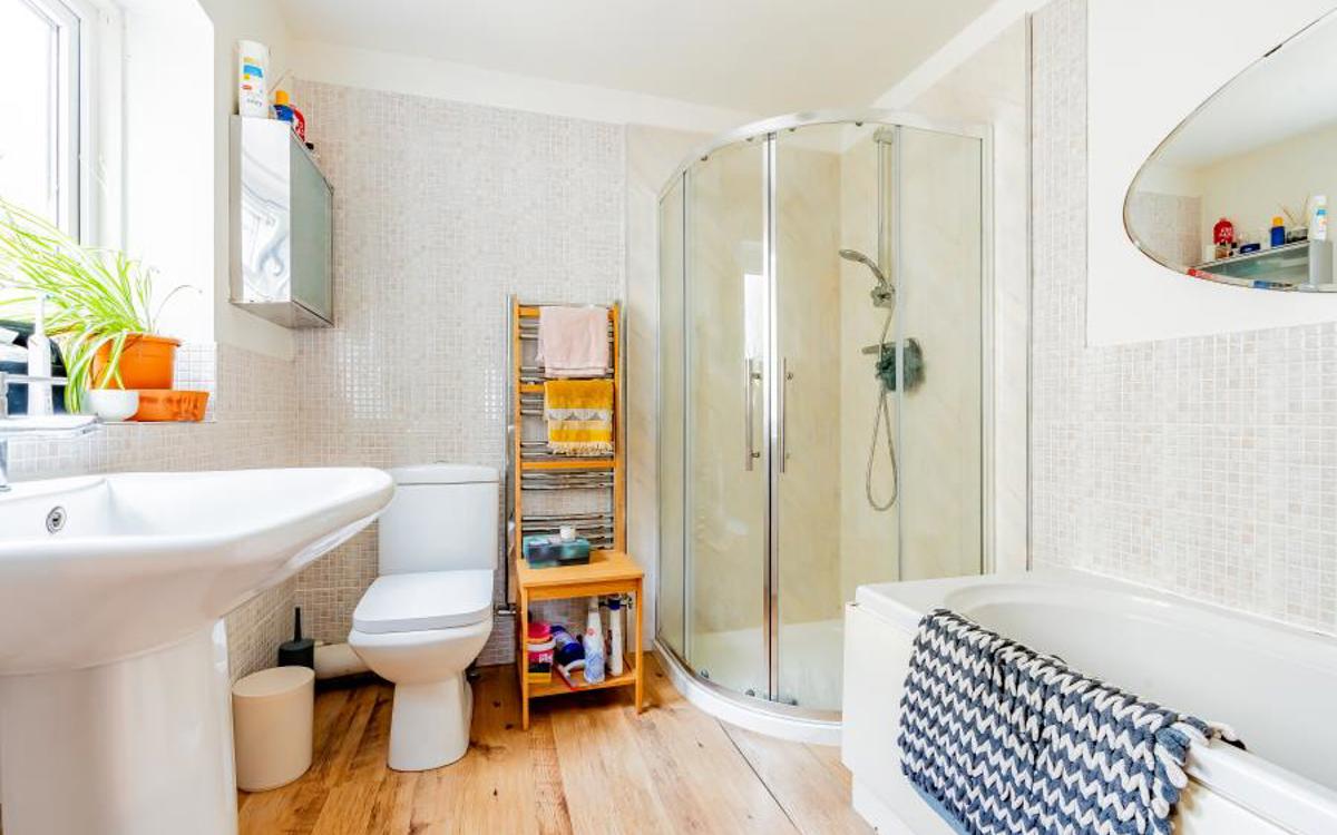 Upstairs are two bedrooms, both of which are doubles, and the bathroom. The main bedroom is generously sized and spans the width of the front of the house, the second bedroom is a great size allowing for use as a multi-purpose space if required. The bathroom is again a good size with a room for both a bathtub and walk in shower.