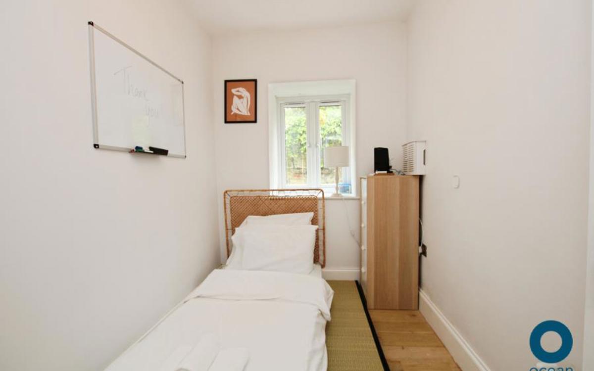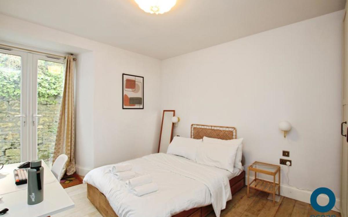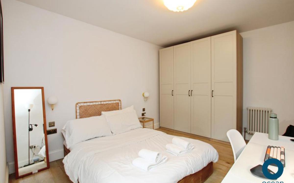 There is one large double bedroom, with wardrobes that will remain in the property. There is a smaller second bedroom with built in storage which would make a perfect home office.