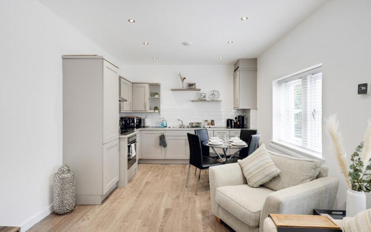 This modern detached coach house is located in a quiet residential area. The property offers two bedrooms, the main bedroom has built in wardrobes and an en-suite. There is an open-plan living area with a well equipped fitted kitchen and dining space, and another modern bathroom. It comes fully furnished with contemporary furniture throughout. Additional features includ...