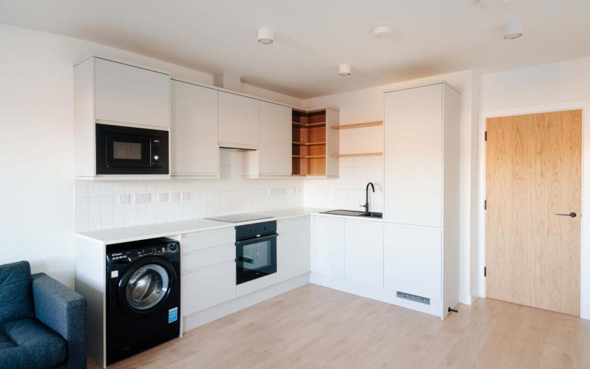 This immaculate, brand new one-bedroom flat is available to let in the vibrant urban area of Bristol. Designed to a high specification, the property is ideal for couples seeking comfortable and modern living. The flat features a spacious open-plan reception room and kitchen area, enhanced by large windows that allow ample natural light to fill the space. Underfloor heating provides consistent warmth throughout, and the open-plan kitchen is well-appointed for contemporary lifestyles.