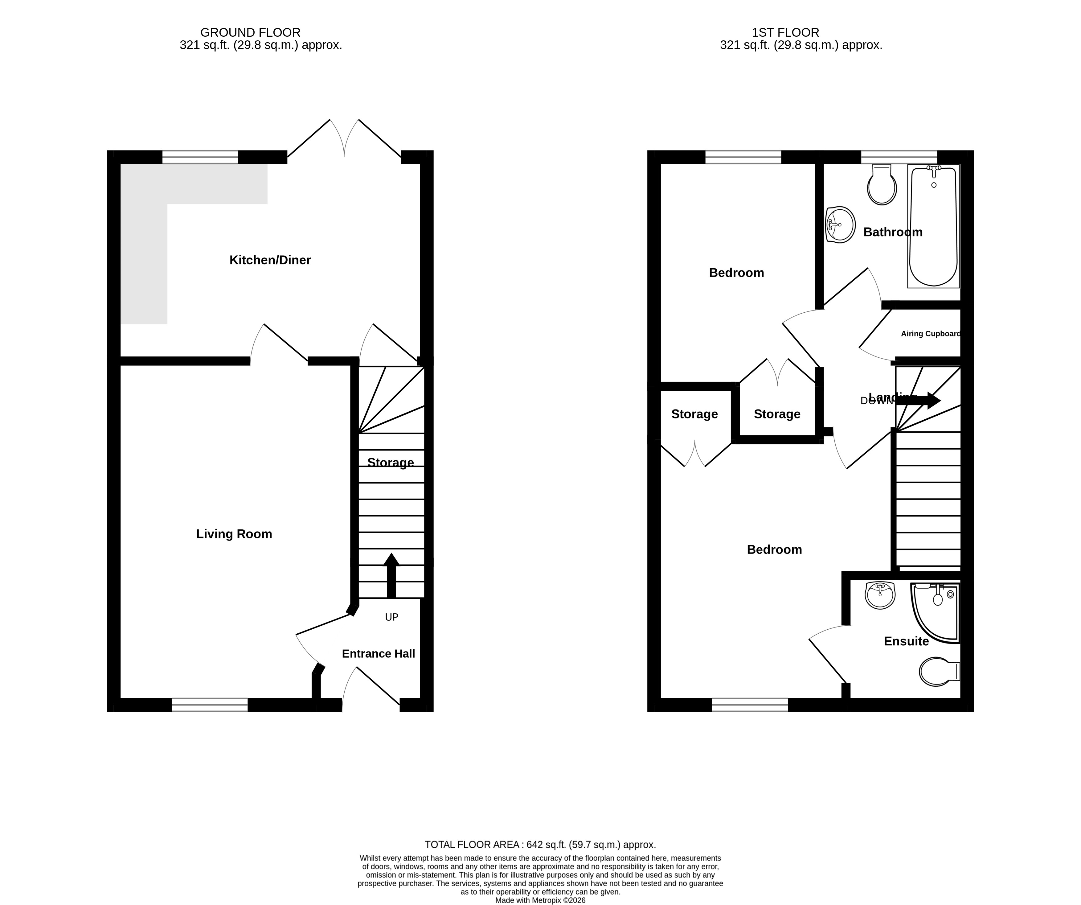 Newly refurbished with new bathroom and en-suite, new kitchen (including oven and hob), new carpets and flooring in the living room as well as repainted throughout. To the ground floor, you enter into an entrance hall with stairs leading to the first floor and a door to the left leading into the main reception room. Through the living room to the rear of the property is the kitchen/ diner. A brand new kitchen has been installed including oven and gas hob. Additionally, fridge freezer and washing machine are provided. There is space for a dining area and a large storage cupboard that runs the length of the stairs.