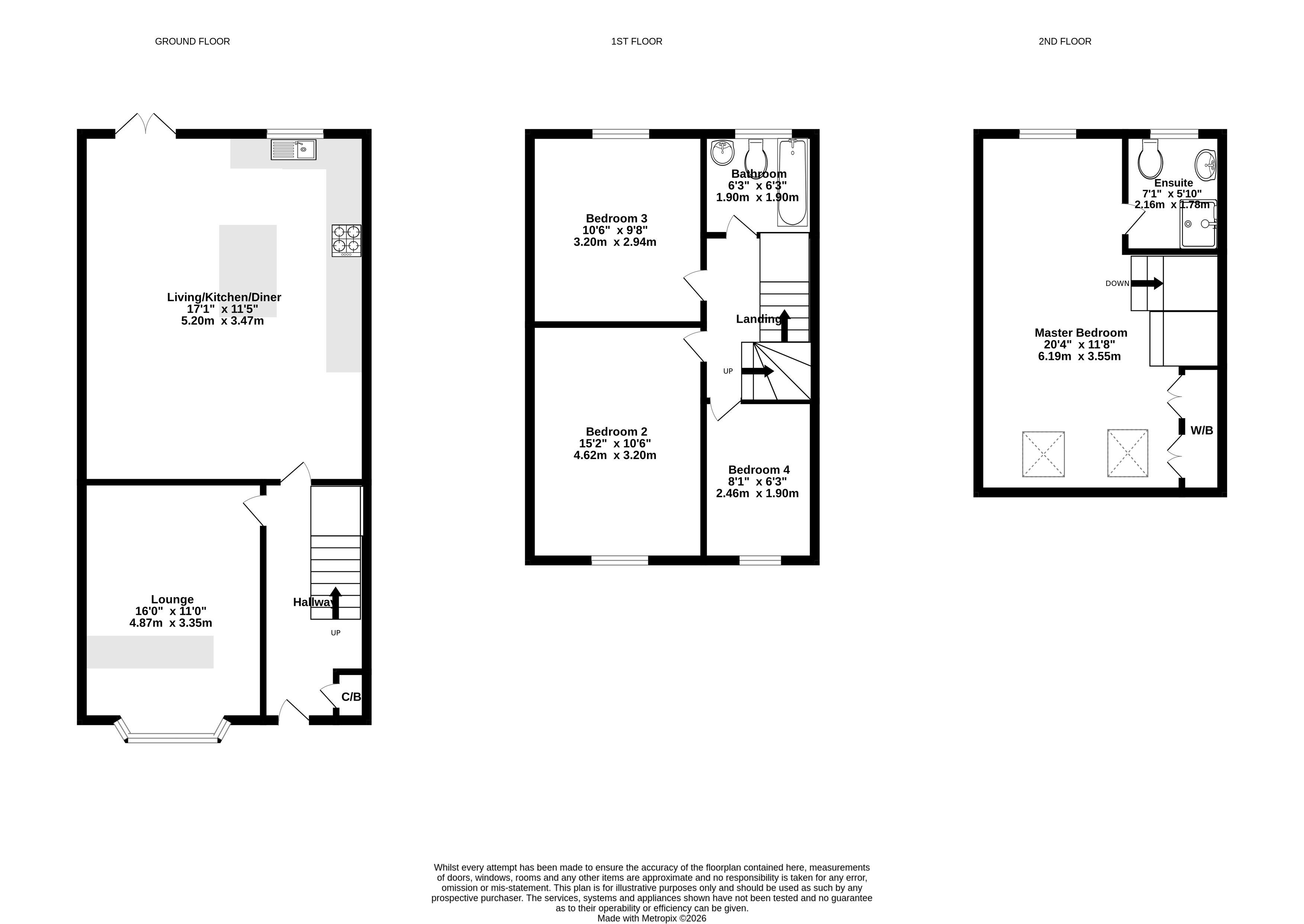 As you make your way to the first floor you will find 3 generously proportioned bedrooms and a family bathroom. To the top floor, is the master bedroom, spanning the entire length of the home. The sizeable bedroom offers additional storage and its own en suite shower room.