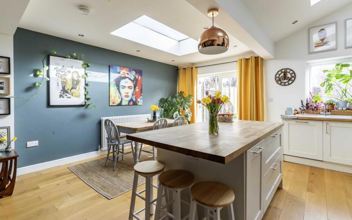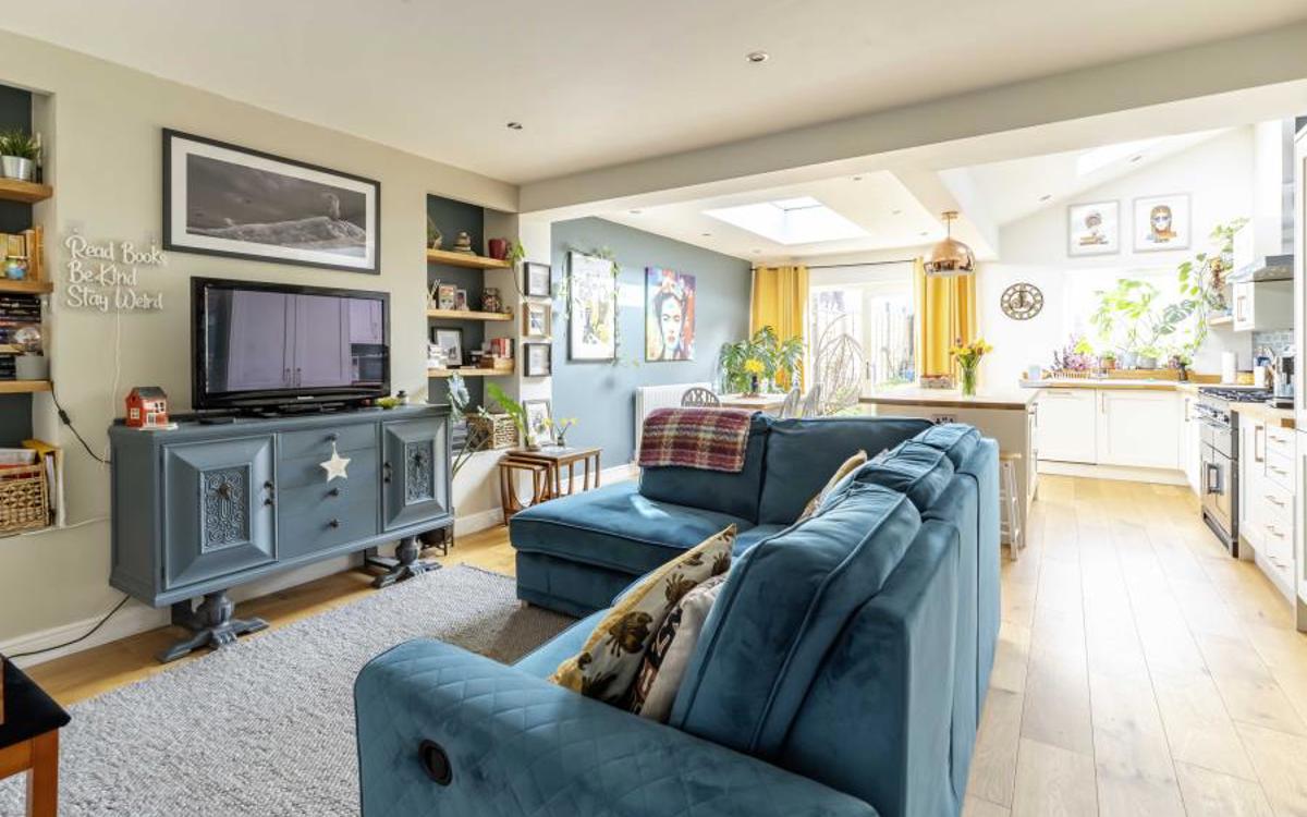 On entering the home. you are welcomed into a traditional entrance hall that allows access to the entire ground floor. To the left you will find a spacious living room with bay window and working fireplace. To the rear of the property, arguably the home’s main attraction is the open plan living/kitchen room. This space is beautifully designed and comes with a central island, Rangemaster oven, Belfast sink and several skylights making this beautiful room bright and airy throughout. From here you also have access on to the rear garden via the patio doors.