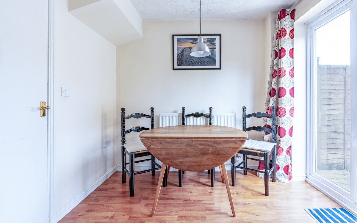 Upon entering the home there is a porch with access to the downstairs WC. Furthermore you will find a spacious lounge area with feature fireplace and laminate flooring. At the rear of the home, there is a fitted kitchen with space to accommodate a dining table, there are also French doors leading to the low-maintenance rear garden. Upstairs you will find two spacious double bedrooms and a modern family bathroom suite as well as ample storage space.