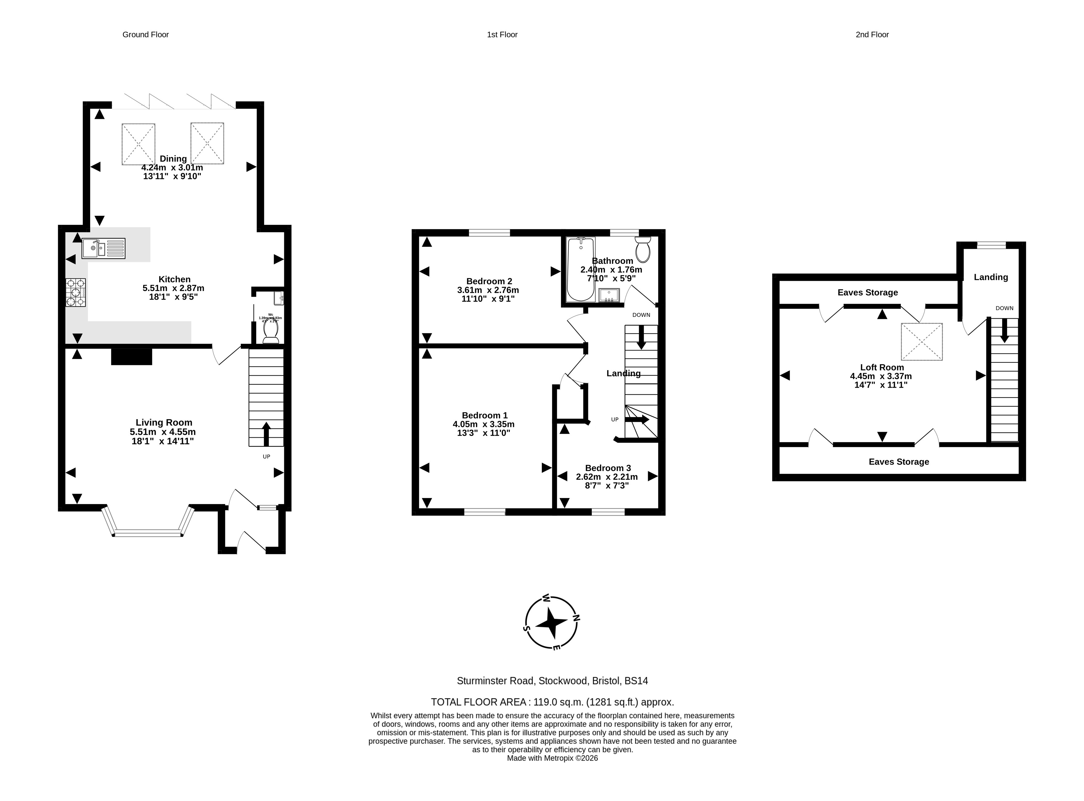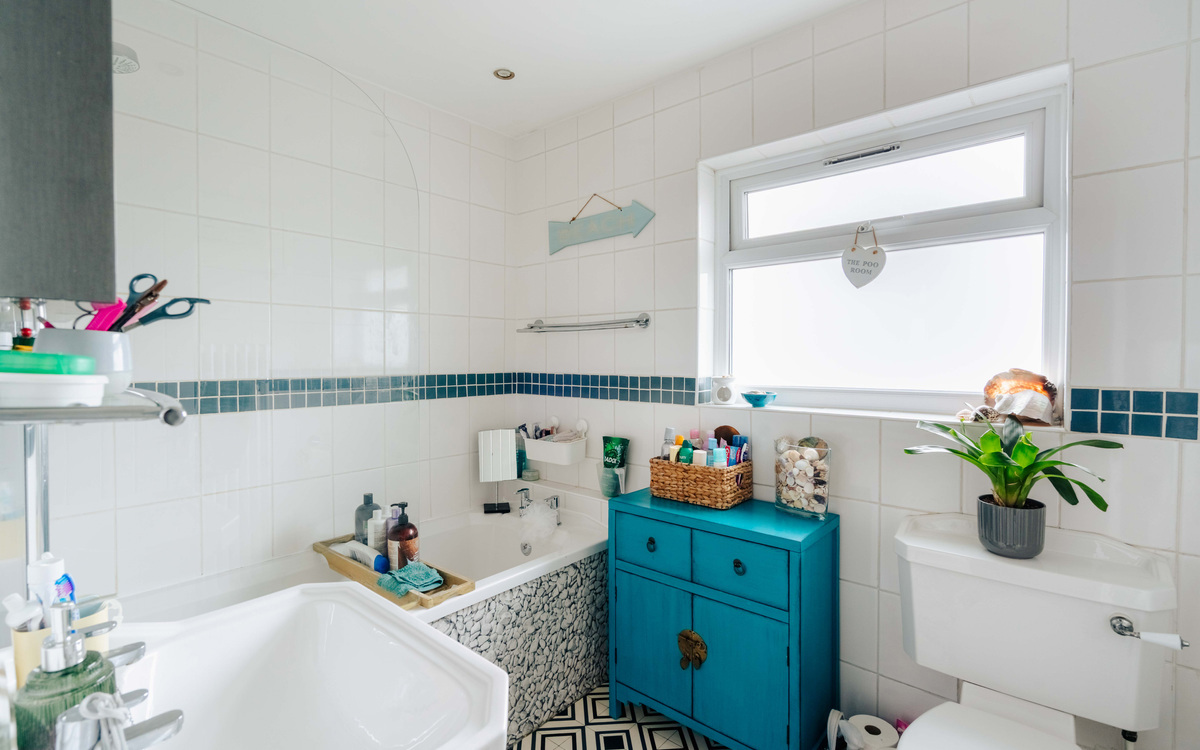 Upstairs are three bedrooms and the main bathroom. Both of the double bedrooms are a similar size with the one at the front benefitting from a built in wardrobe storage space and the rear bedroom enjoying an outlook over the garden. Bedroom 3 is an ideal size for a small child, a home office or walk-in wardrobe space, the bathroom has a white suite with an electric shower over the bath. The loft is easily easily accessible storage thanks to the addition of a staircase .