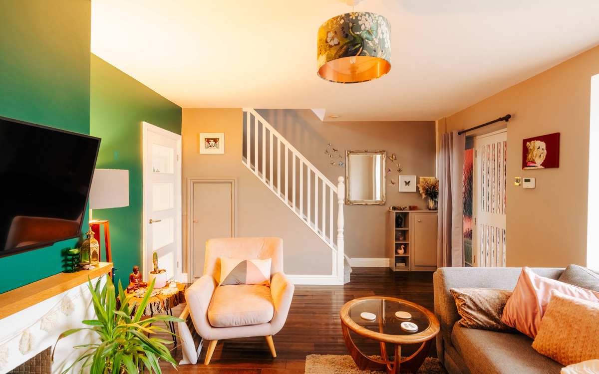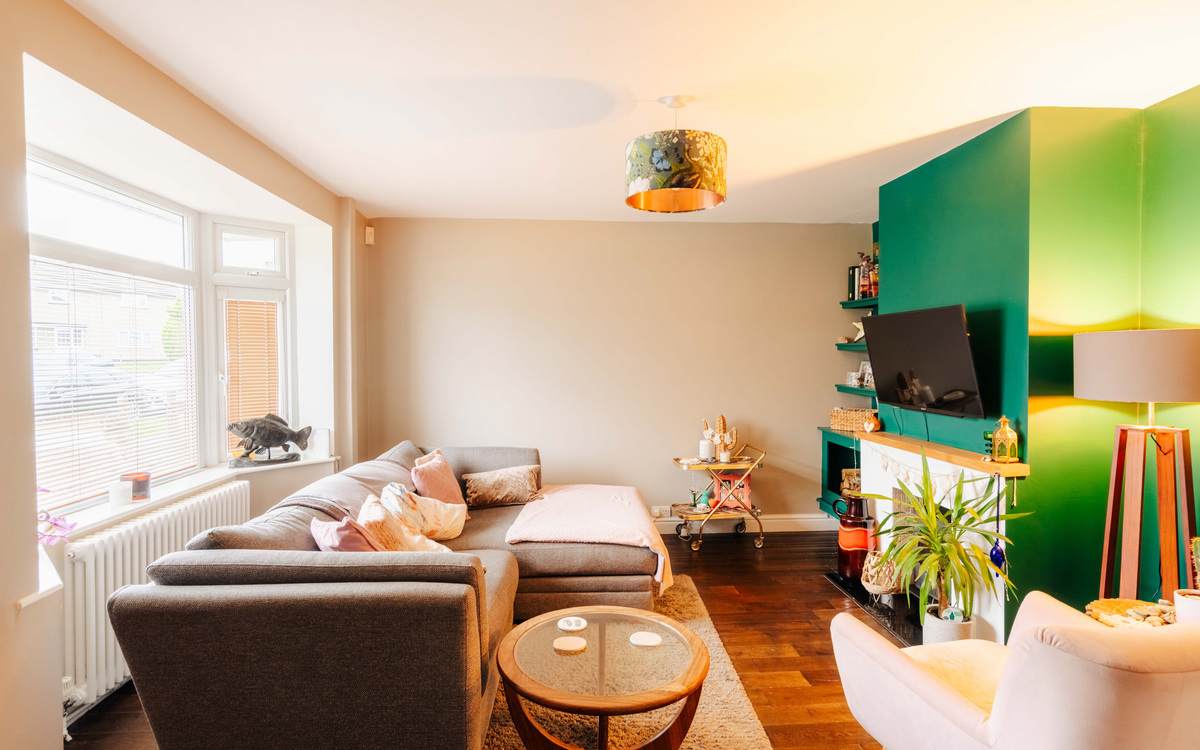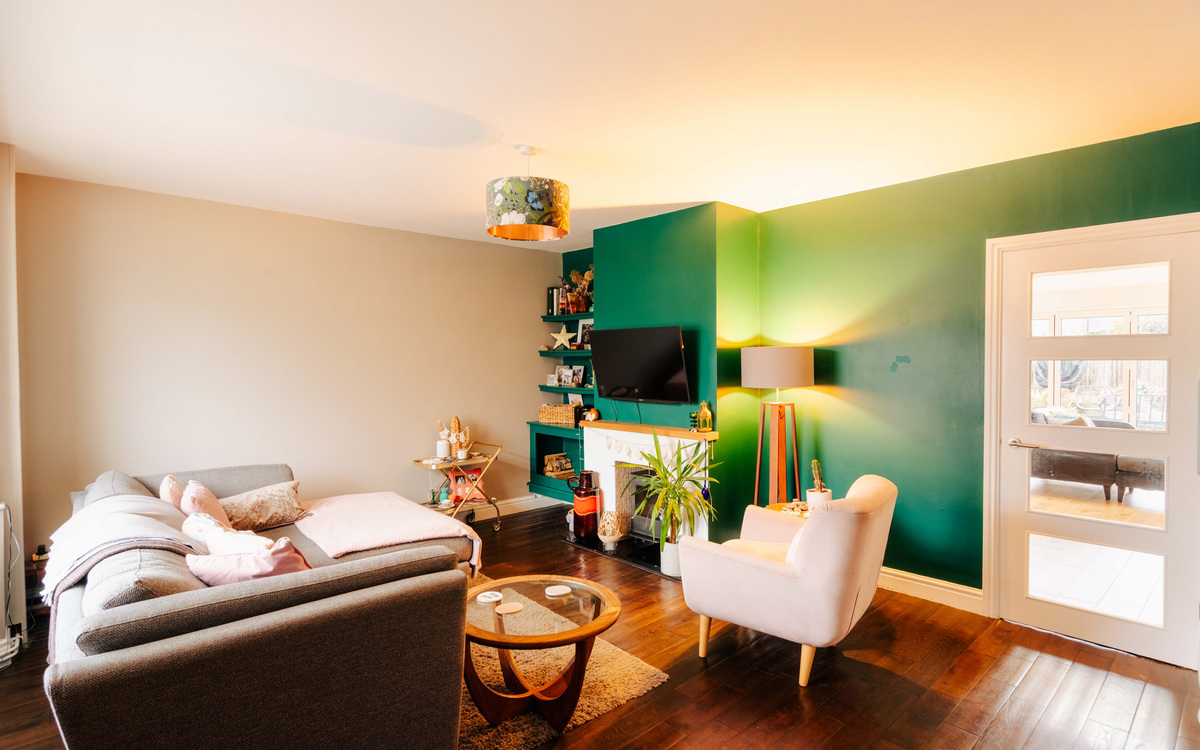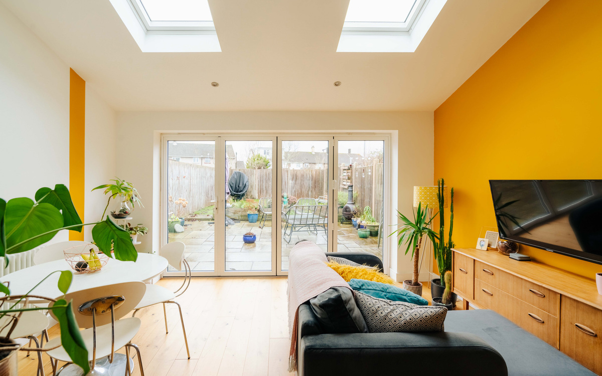 On the ground floor of this 1950s terrace, off the entrance porch which provides and place for shoes and coats is the living room which, despite its size, has a very cosy feel. There is a bay window bringing in plenty of light, floorboards which add some character and a working log burner in the fireplace. There is also plenty of storage including shelving in the alcove. Beyond the living room is the extended kitchen/diner.