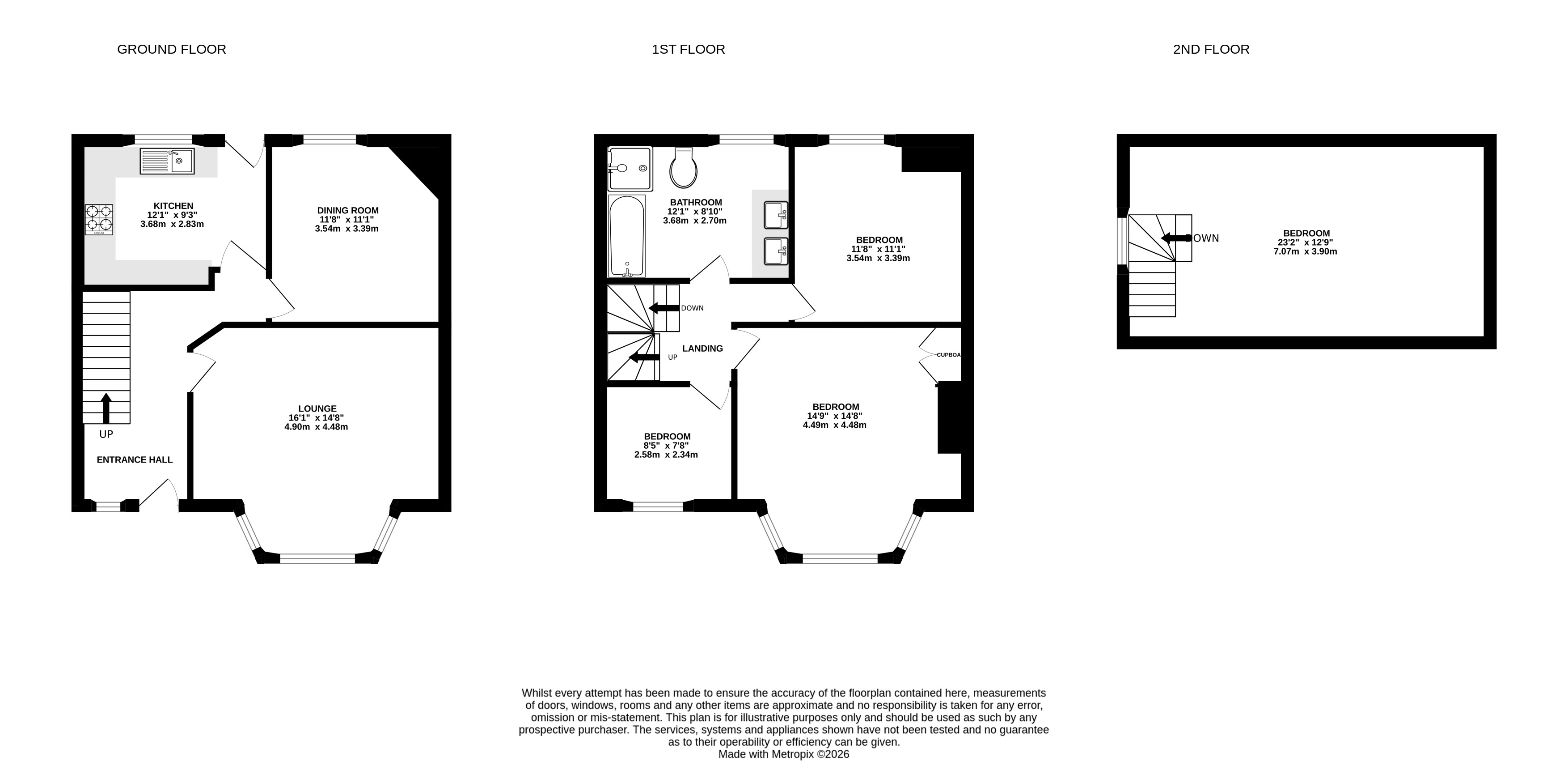 At the front of the property is the lounge accessed from the entrance hall, a sizeable room that has a bay window and offers ample space. At the back, you will find the separate kitchen and dining room, both looking over the rear garden. The kitchen has plenty of storage and worktop space and provides access to the garden. The first floor features 3 bedrooms, including a master bedroom sitting at the front of the property and a large family bathroom with a dual vanity unit, walk in shower and separate bath. Ascending to the second floor you will find a further large double bedroom, that benefits from eaves storage.
