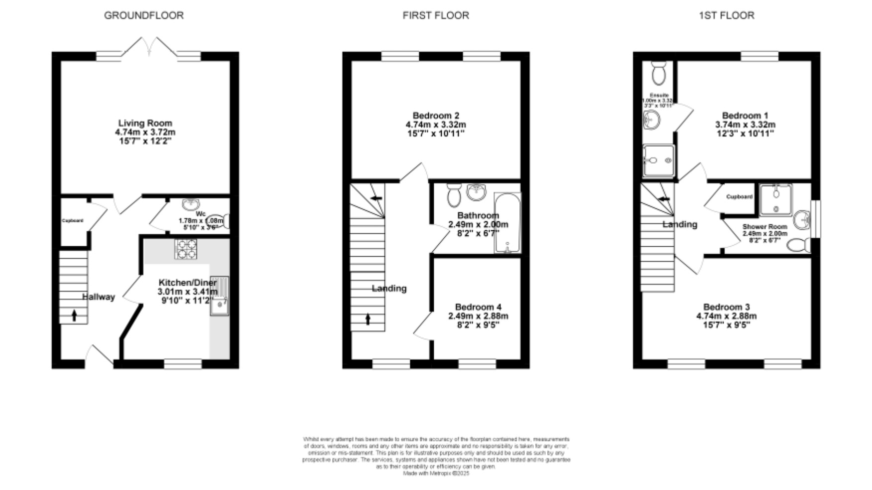 To the ground floor of this good sized family home you will find a kitchen to the right upon entry which comprises of fully built in appliances and good space for a dinning table. Continuing to the back of the ground floor you will find a large living area which stretches the width of the property and provides access to the garden. To complete the downstairs is a W/C and further storage space. Moving up to the first floor you will find 2 double bedrooms and a family bathroom all immaculately presented. Continuing up again the property comprises of 2 further double bedrooms, the master benefiting from an ensuite bathroom and sat between the 2 rooms is a well presented shower room.