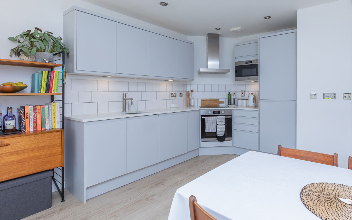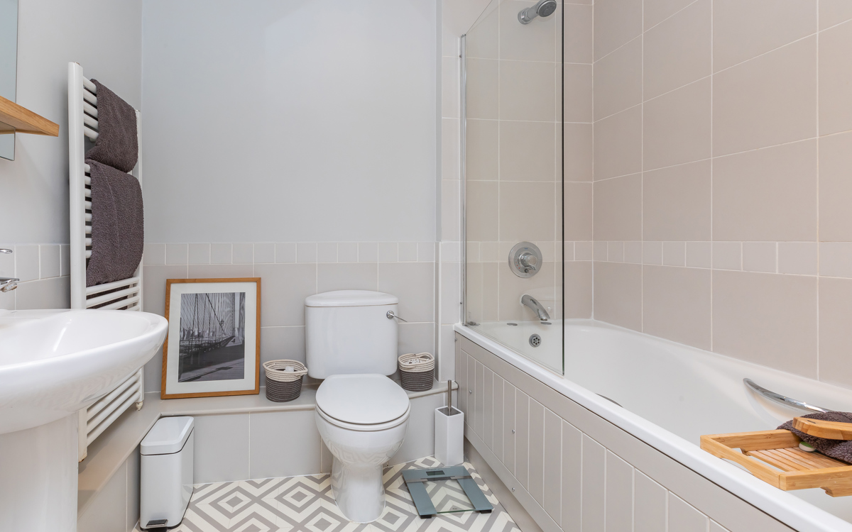 Everything you need in an apartment – a great open plan living area with a smart modern kitchen and plenty of room to unwind after a hard day’s work. In addition, the extensive private south facing terrace is the perfect spot to enjoy a morning coffee or have friends over for dinner. A good sized double bedroom and a well arranged bathroom complete this very impressive home.