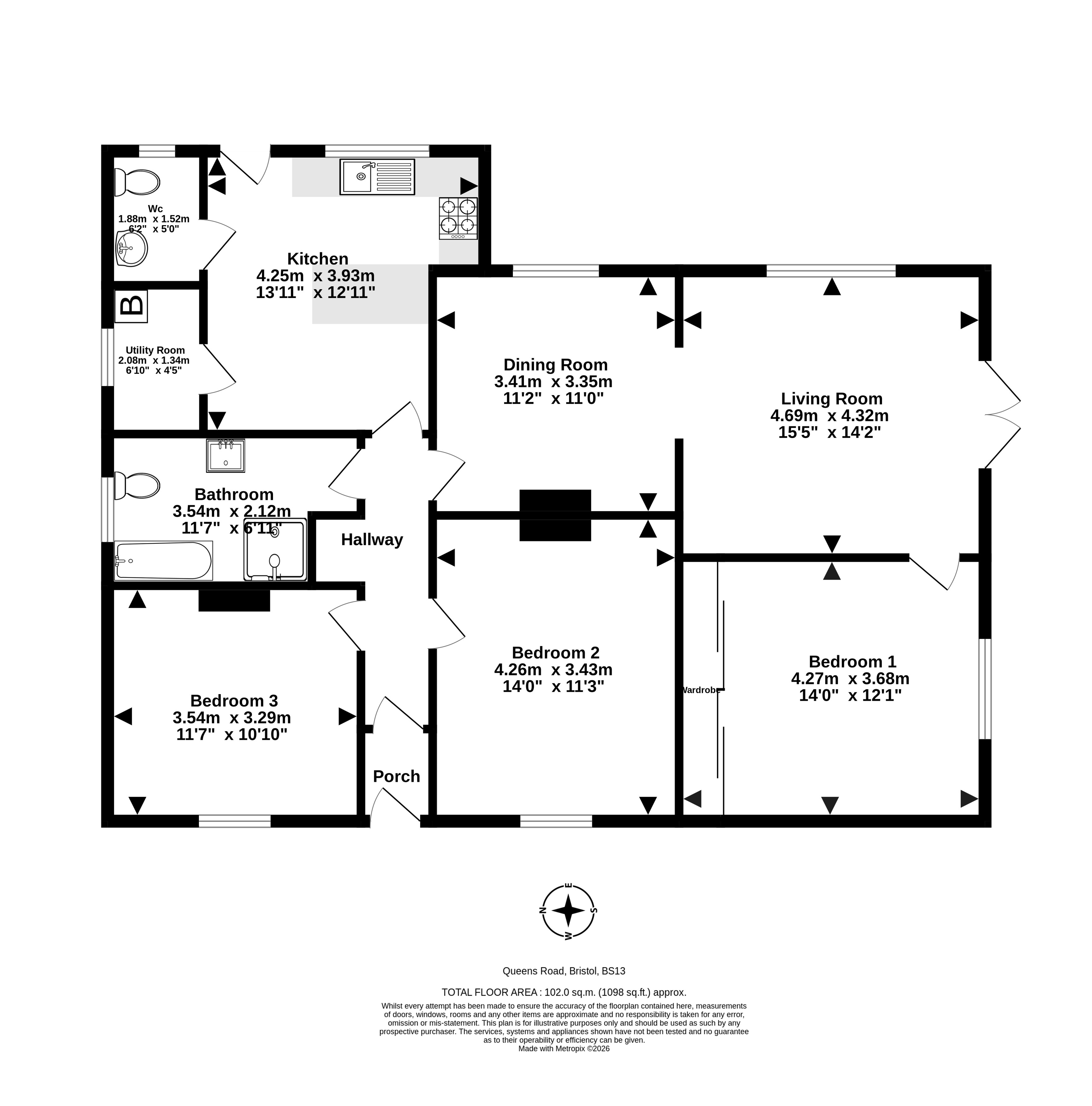 Off the kitchen is a large WC and a utility room which gives additional storage space and has plumbing for a washing machine and a dryer.