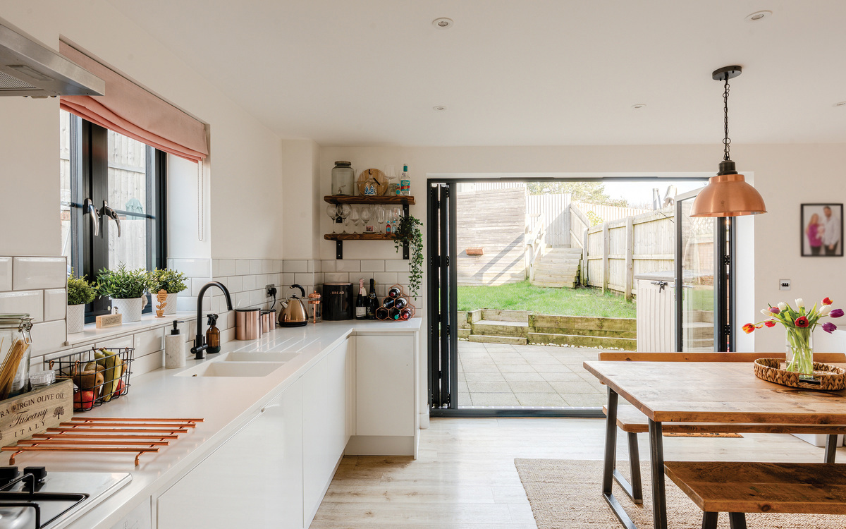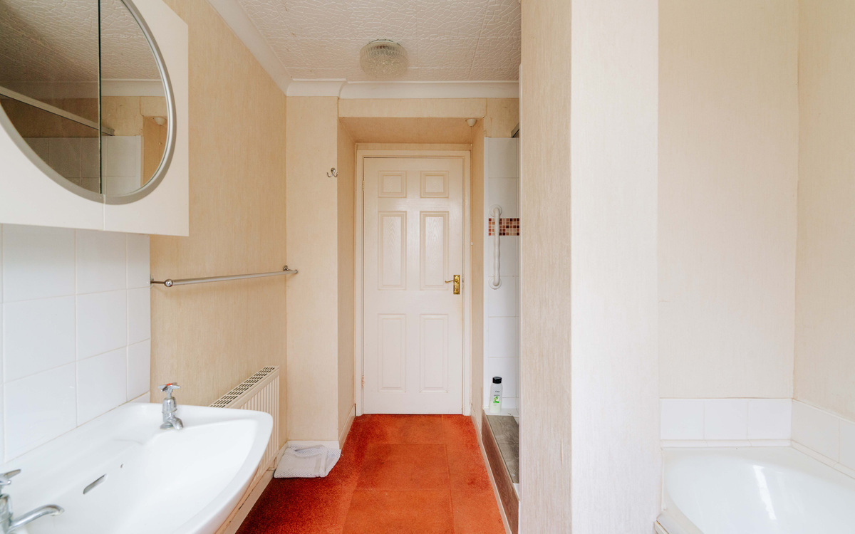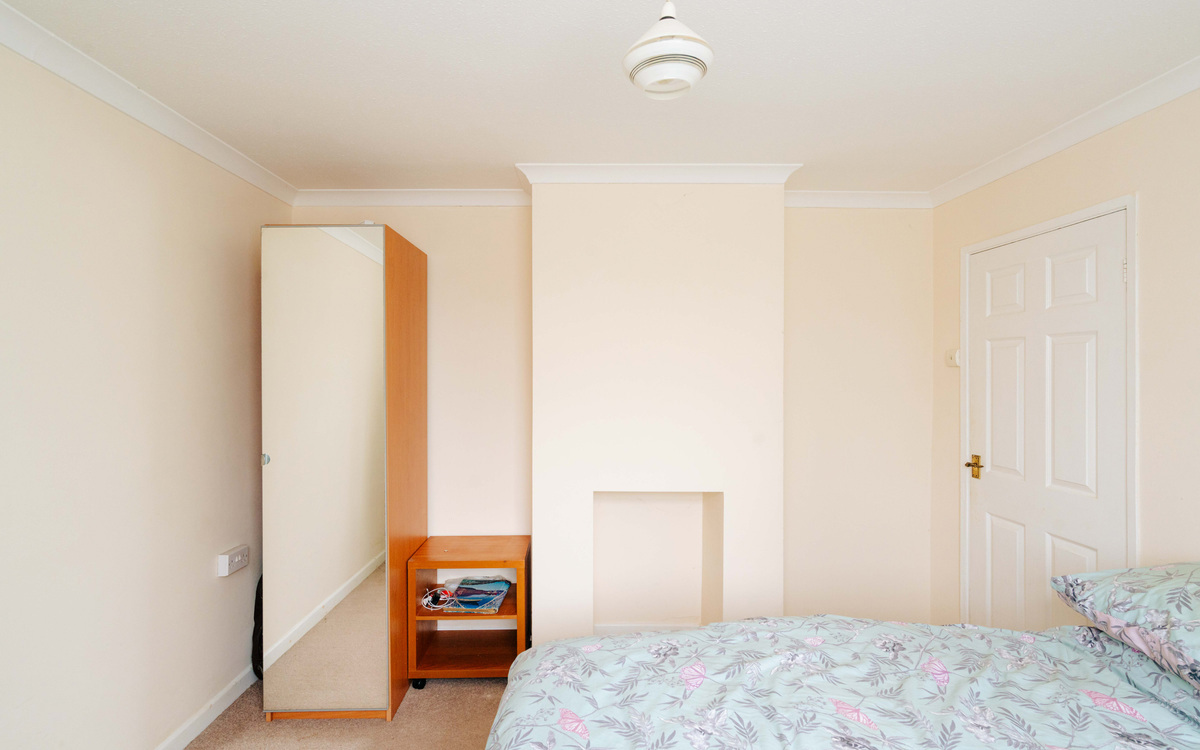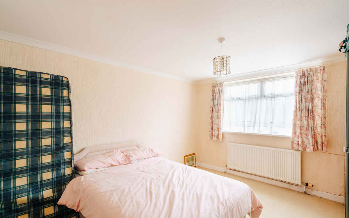 Also off the hallway are the living and dining rooms which offer generous socialising space thanks to another extension to the house. There is plenty of light coming in through the large east facing windows and the patio doors on to the southern side of the garden. The main bedroom is off the living room and as well as another south facing window, there is integrated wardrobe space running along one side.