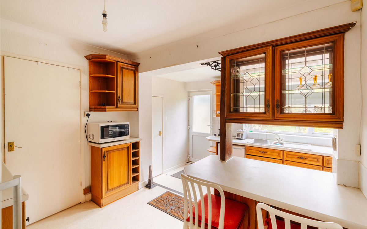 Set within an estimated 3/4 of an acre, this extended three bedroom bungalow offers a lot more than every other property in the area! Inside off the entrance hallway are the first two bedrooms, both of which are doubles, the main family bathroom which has a four-piece suite that includes a separate shower and the kitchen which benefits from an extension. There is ample cupboard and counter space, spaces for appliances and a breakfast bar. There is plenty of light coming in through the window which has an outlook over part of the garden.