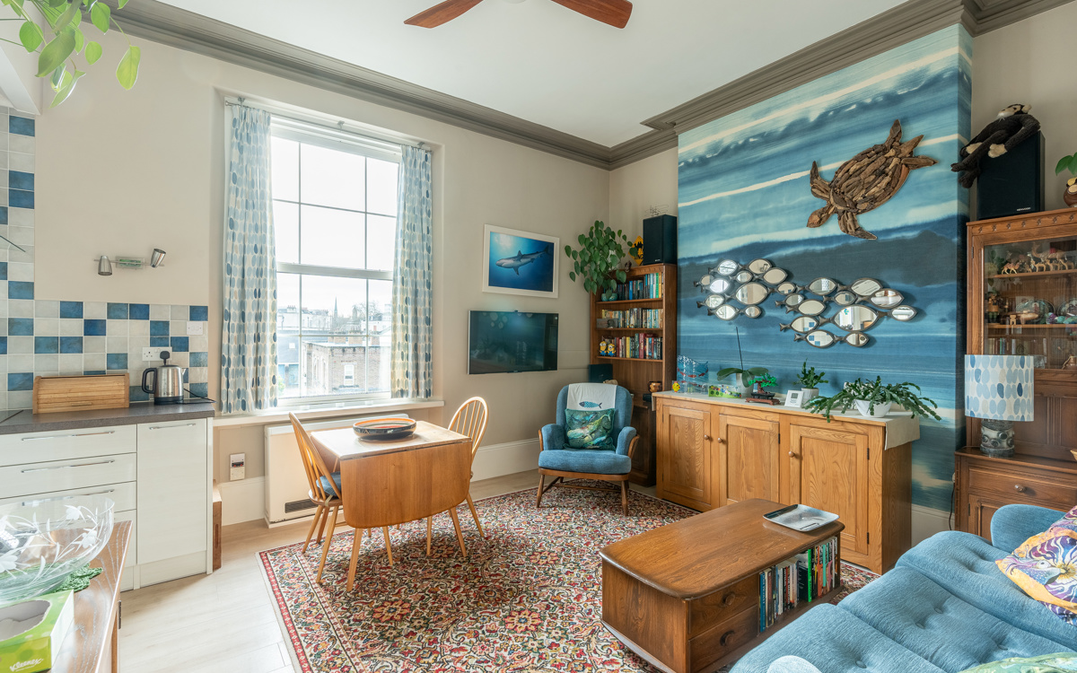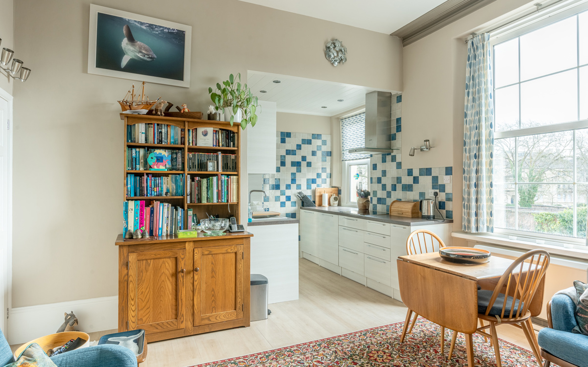 A spacious and well-proportioned 2 double bedroom first floor flat with 11ft high ceilings, south facing living area, first come first served off-street parking and positioned just yards from Whiteladies Road.