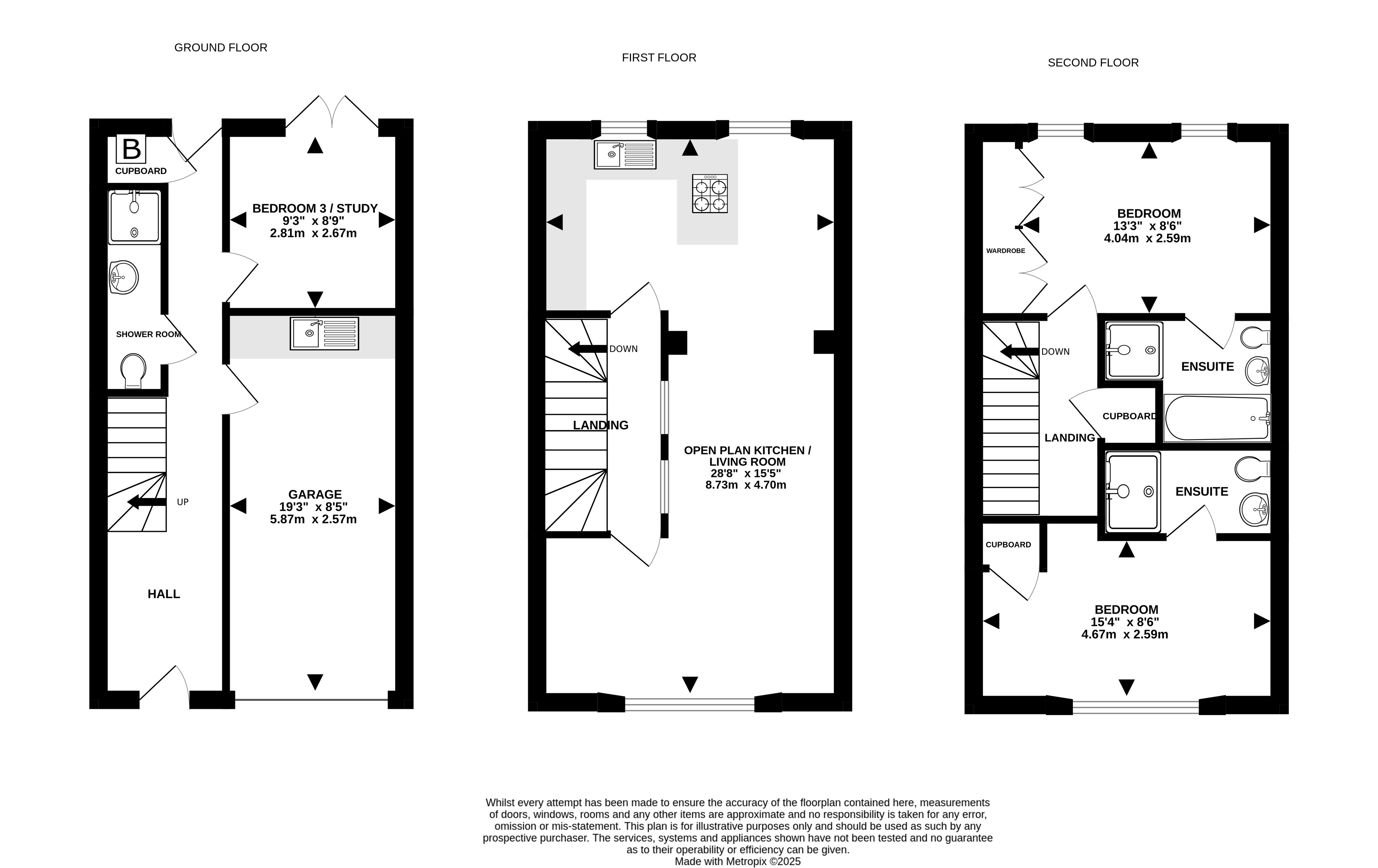 You enter into a spacious hallway on the ground floor, and this level has the third double bedroom that has doors...