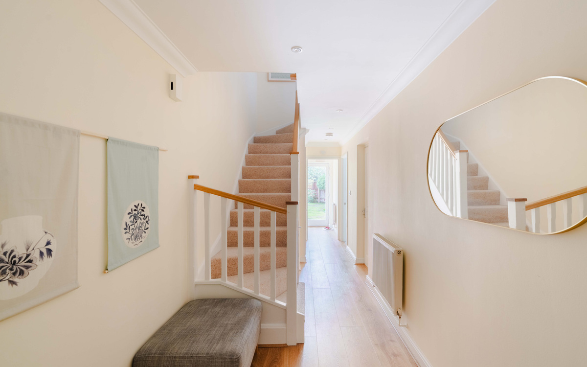 A door at the rear of the hallway opens to the garden.