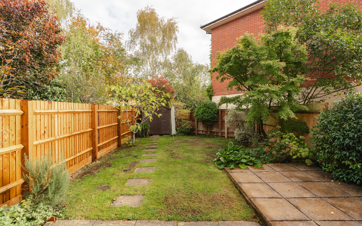 The garden is a lovely space with plenty of established tress that provide colour and privacy. There is a patio space next to the house, whilst the main part of the garden is lawned.