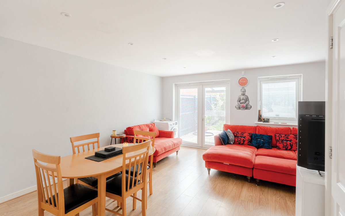 The accommodation comprises of an entrance hall, an upgraded downstairs w/c, a modern kitchen and a spacious living/dining room with French patio doors onto the sunny garden. On the first floor are three spacious bedrooms, with the primary bedroom offering a renovated monochrome shower-room. There are two further spacious bedrooms and a update family bathroom. The home also benefits from modern gas central heating, LED downlights with dimmer switches throughout, UPVC double glazing and a driveway.