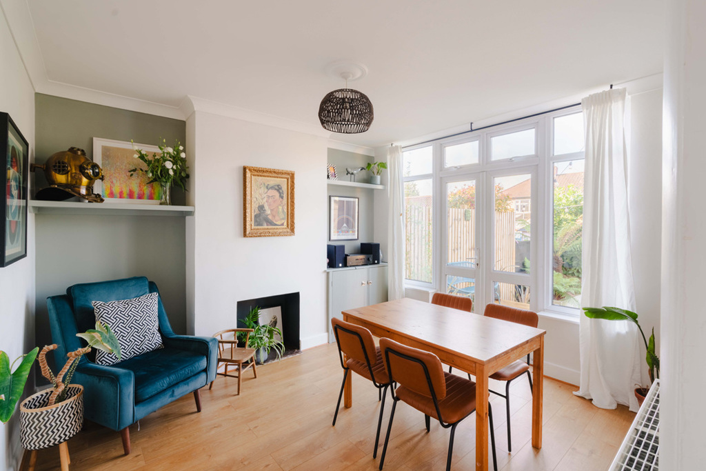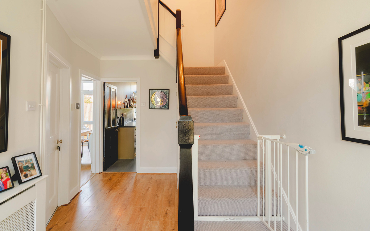 Stoneleigh Crescent is a stunning home, perfect for families and young couples alike — ready to move into and sure to steal your heart. As you step through the front door, you’re greeted by a beautifully decorated interior that immediately reflects the care and love the current owners have put into this property. The ground floor features a living room at the front of the home, with a bay window, featuring original stained glass and fitted bespoke shutters. To the rear, there’s a second reception room that overlooks the garden, along with a separate kitchen that provides direct access outside. Upstairs, you’ll find three bedrooms and a modern family bathroom.