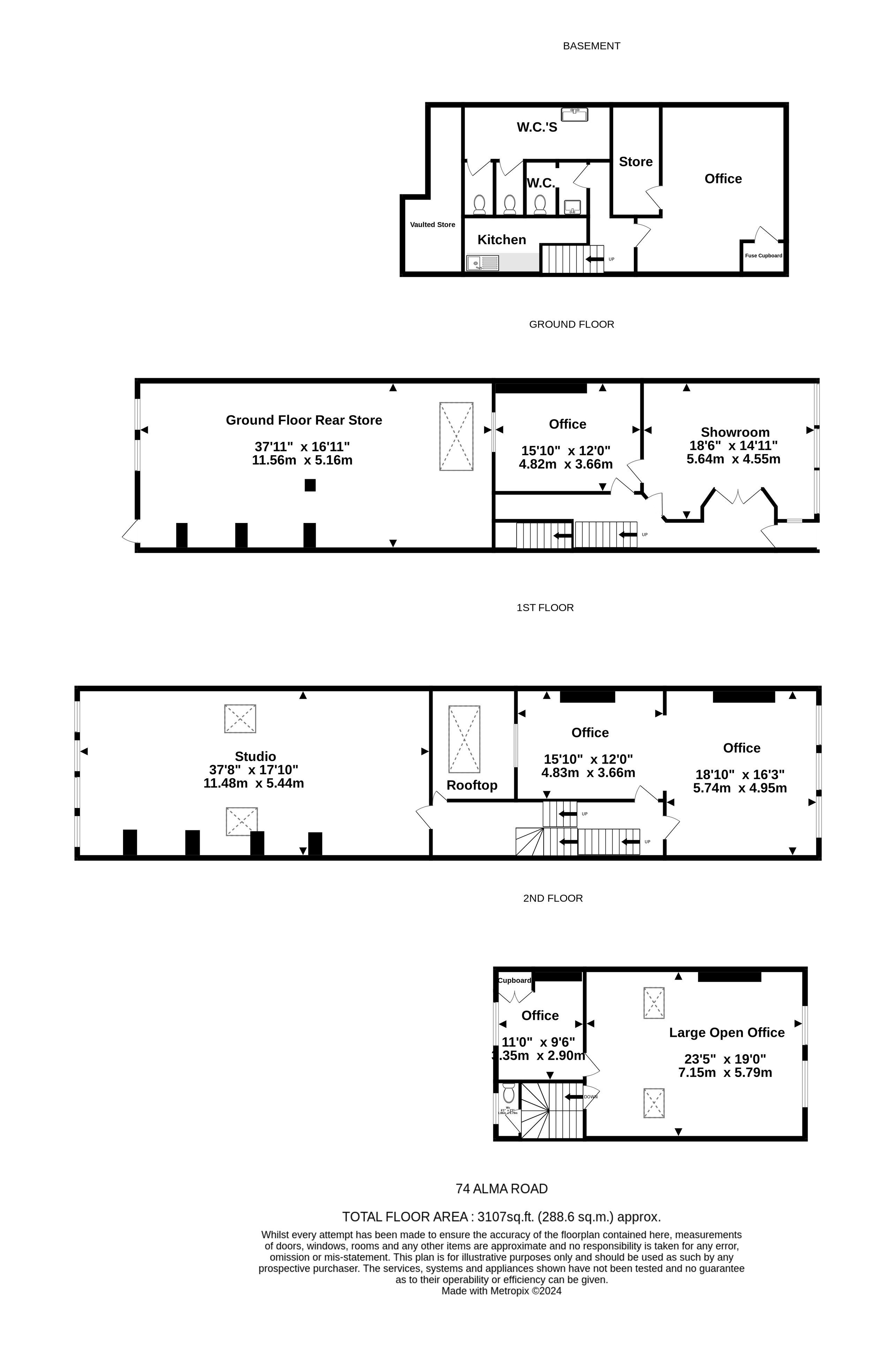 4 stories of commercial space currently set up with 6 offices, photo studio, showroom, kitchen and 3 w.c.'s (approx 3,107 sq.ft). The property is currently vacant and has rear access from Melrose Place. For more details please call 0117 9469838