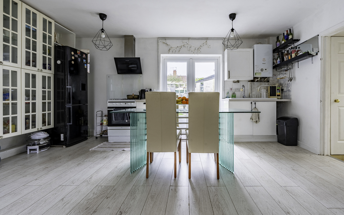 The ground floor has been remodelled into a largely open plan space. The entrance hallway is still there, providing a buffer from the outside and a place for coats and shoes but the living space has been combined. The size of the room gives great potential to further create distinct areas within the space. There is a small lobby leading to a WC and then onto the lean to which has plumbing for the washing machine. Upstairs are three bedrooms, two of which are doubles, and the family bathroom. The main bedroom has plenty of room for storage furniture while bedroom two is still generous. The box room can be used as a bedroom with good furniture planning.