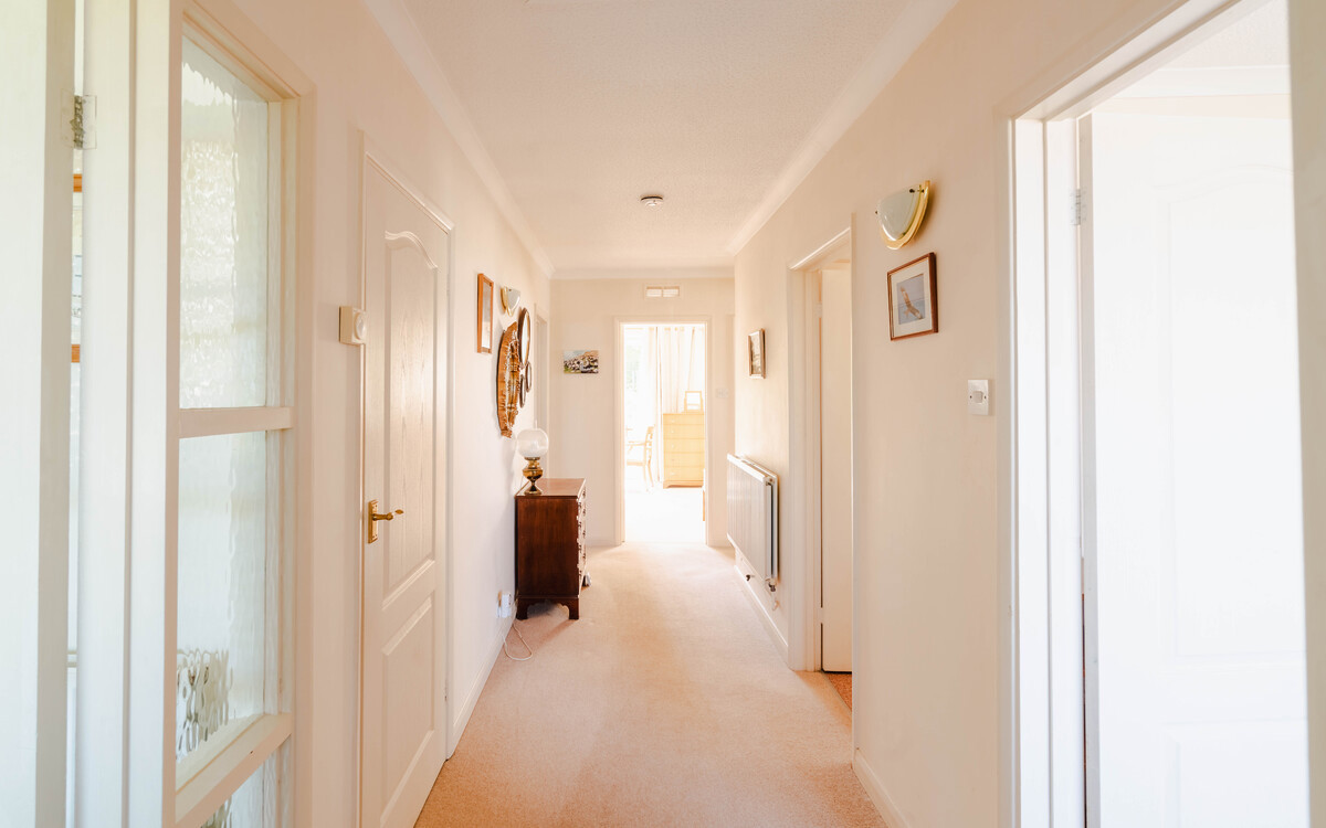 This delightful bungalow offers spacious living accommodation throughout with plenty of scope to make your own. A large entrance hall offers access to all rooms, with a lovely living room that showcases the stunning Estuary views, and there is a generous 25' kitchen/diner. The kitchen has integrated double oven, gas hob with space for appliances. There are two double bedrooms, the master has sliding doors opening onto the garden and there is a 4 piece bathroom suite with separate walk-in shower. A further w/c and 2 storage cupboards are located off the hallway. The loft is a generous size is partially boarded, and has a light.