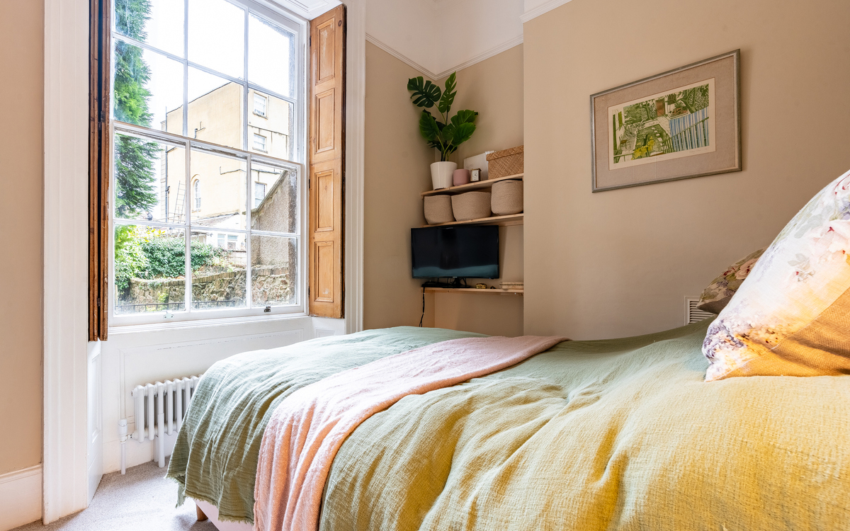 An elegant 1 bedroom hall floor garden flat with level access, high ceilings, working shutters and allocated off-street parking space, set within a fine Grade ll listed Georgian terrace equidistant to Clifton Village and Whiteladies Road.