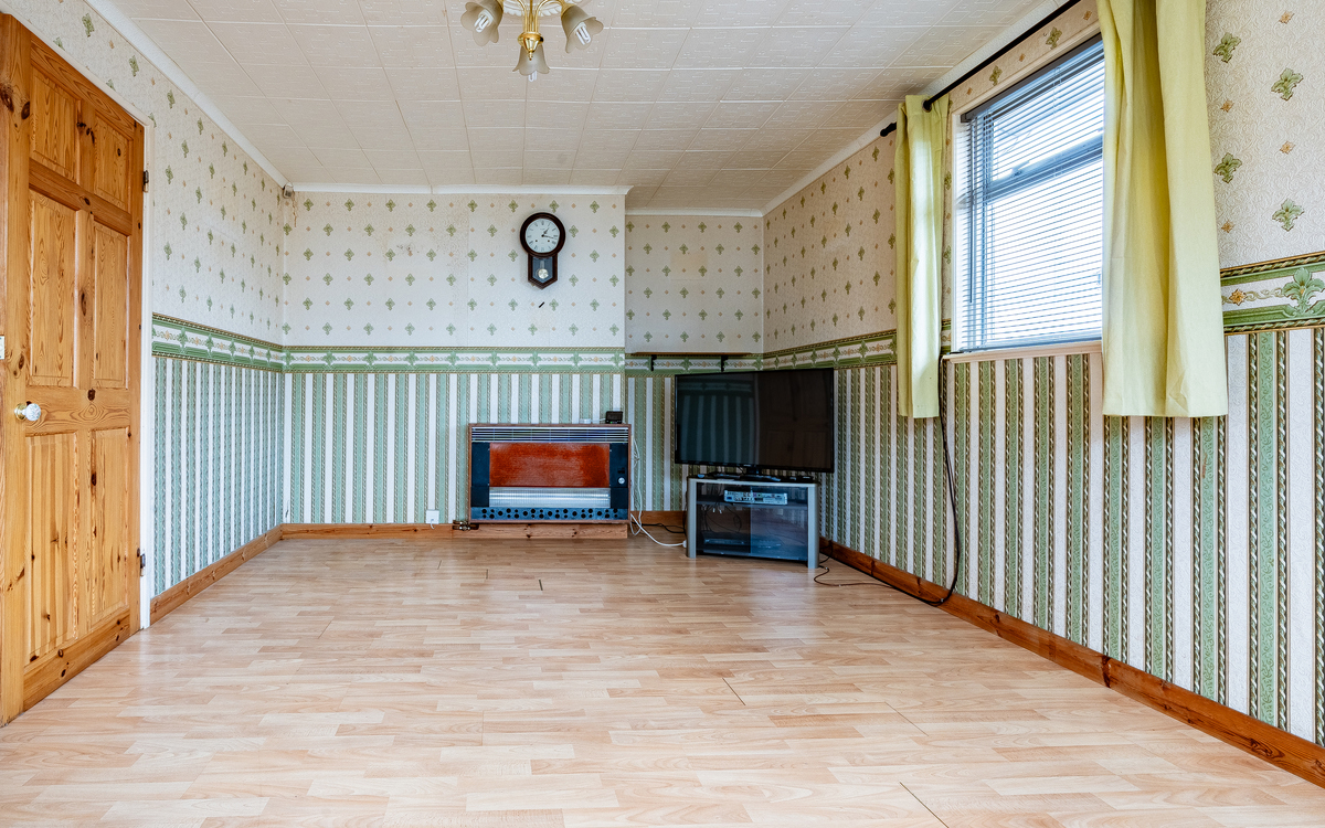 CASH BUYERS ONLY (CONSTRUCTION) Detached two-bedroom bungalow with gardens, parking and garage. The front door opens into the entrance porch with a further door leading to the spacious entrance hall. Doors lead to the lounge with windows to the front and side, the separate kitchen has fitted units and a window to the rear and door to the side. Bedroom one has doors leading to the rear garden and bedroom two has a window to the front. The bathroom has a white suite and a window to the rear.