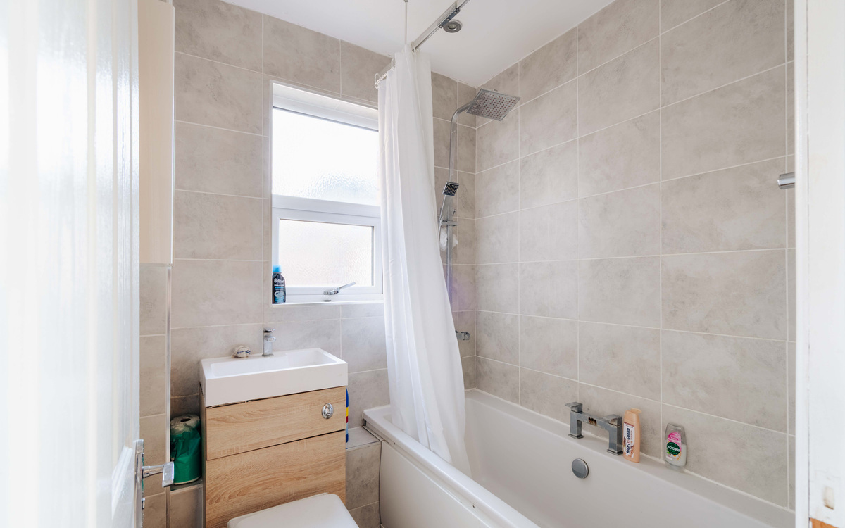 On the ground floor and off the entrance hallway, to the left is the living room which runs the length of the house and enjoys plenty of light coming in through windows at both ends while to the right, the bathroom has been upgraded to make the most of the compact space and includes a shower over the bath. Completing the ground floor is the kitchen which has an integrated electric oven and hob, plus spaces for the other essential appliances and access to the garden. Upstairs are four bedrooms, three of which are small doubles. The layout can easily be returned to what it was if desired - three bedrooms (two doubles and a single) or the smallest room could be turned into an upstairs bathroom.