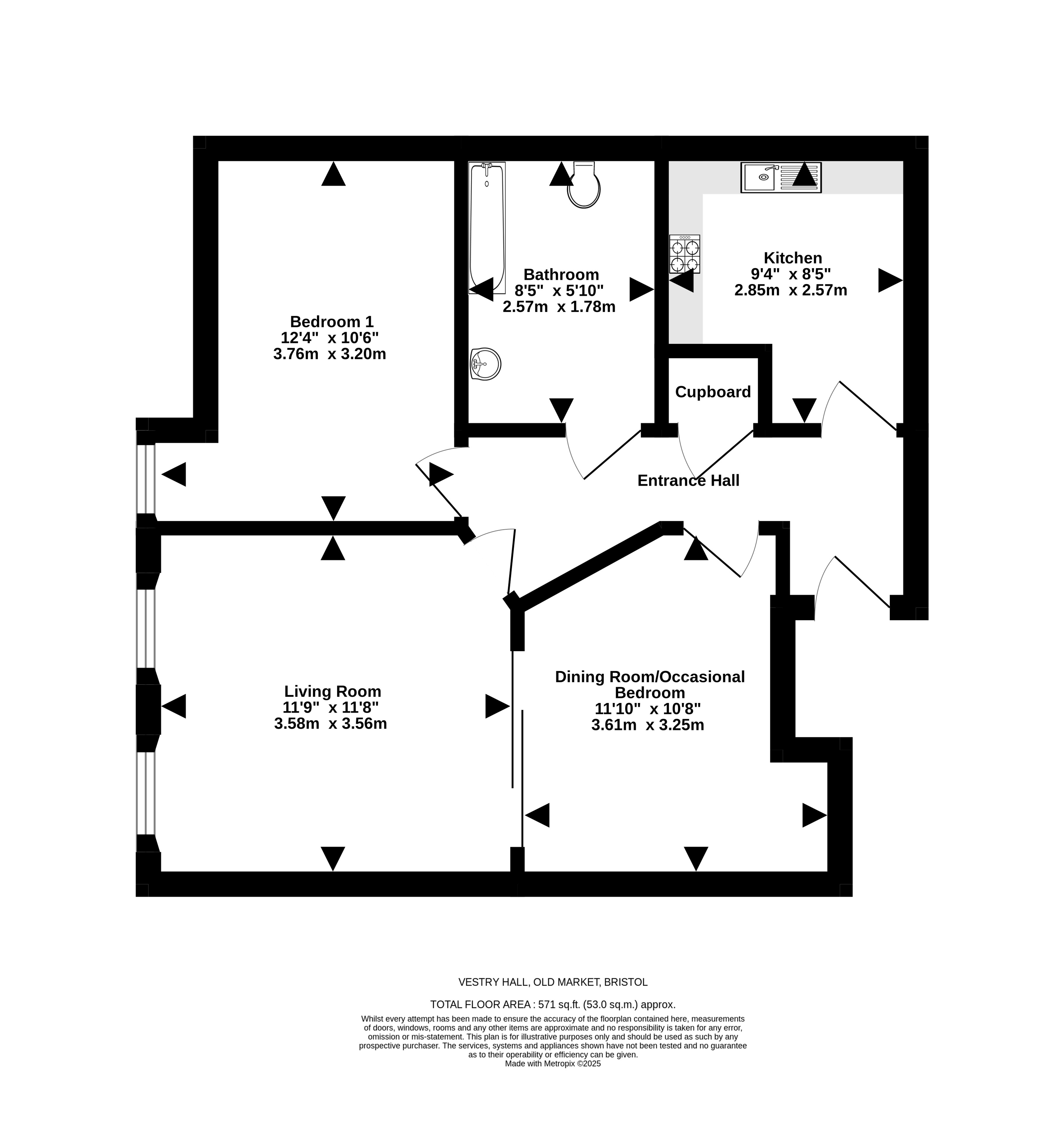 Formally a cinema, which shut its doors in 1954, Vestry Hall's historically enriched building has since been converted to stylish flats. Nestled in the popular Old Market, the flat has generous proportions where every inch of space has been maximised. The home is bright and spacious throughout, which is perfect for first-time homeowners. Partition doors divide the living room and second reception, which could easily be used as a second bedroom if guests stay over. The kitchen, bathroom and bedroom all flow seamlessly throughout, offering the perfect space for buyers looking to buy in the area.