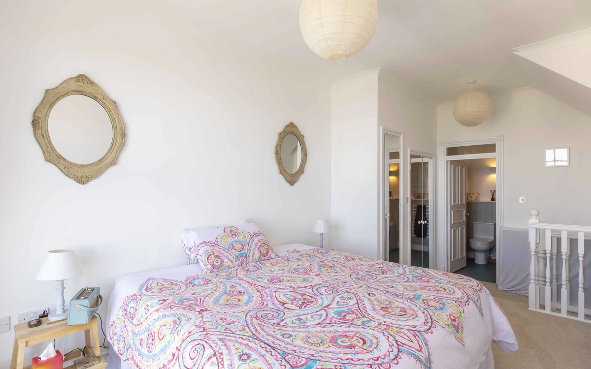 The split-level property has been tastefully renovated with updated kitchen, bathrooms, secondary glazing and has 2 undercroft parking spaces. The spacious apartment has an entrance hall with 2 storage cupboards, modern fitted kitchen with integrated hob, oven, dishwasher and space for a fridge/freezer with an eye level opening onto the living room which has plenty of space for a dining table and sofas. There are 2 double bedrooms all with fitted wardrobes on the ground floor together with a large 4 piece family bathroom with separate shower. The staircase leads to the private principal double bedroom which also has fitted wardrobes and an en-suite 3 piece modern bathroom.