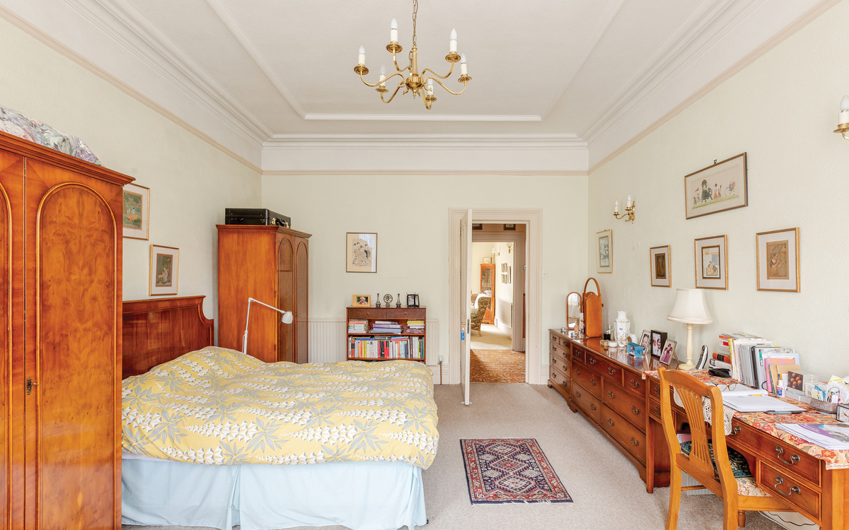 The top floor is home to a fifth bedroom, set apart from the main body of the house, making it particularly suited to older children, guests, or a more private workspace. From here, access is provided into the loft, where there is clear potential for conversion to create additional living or bedroom space, subject to the necessary permissions.