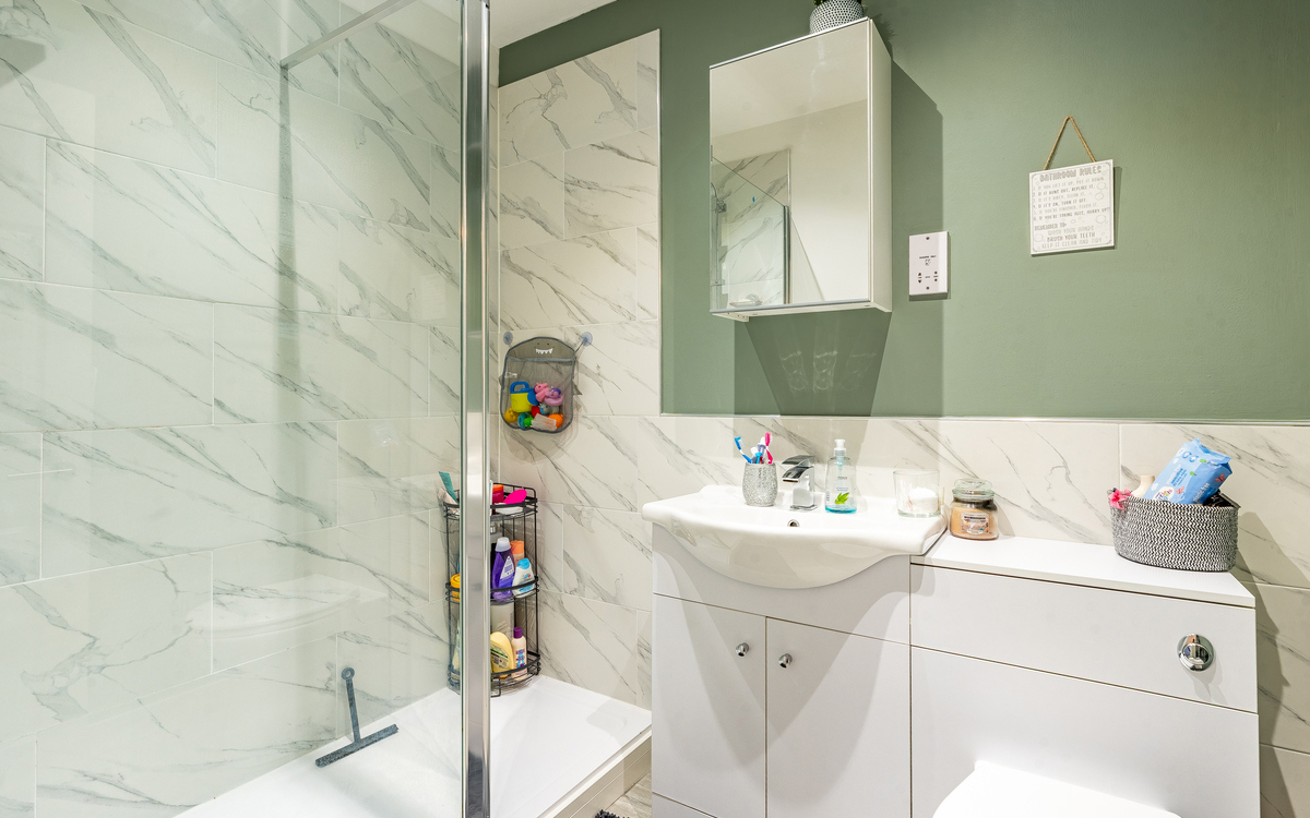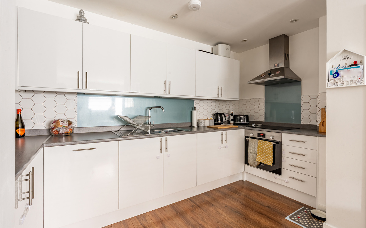 Situated at the rear of the development, this maisonette has a very private feel. As you enter the property, you are presented with a spacious lounge/dining/kitchen area and a downstairs WC. There is plenty of room for sofas and a dining table & chairs. The kitchen features an integral oven & hob, dishwasher and fridge/freezer. Upstairs, two double bedrooms, the master bedroom has an en-suite with a walk-in shower, Also on this level is the main bathroom that has a walk-in shower and a utility cupboard where the washing machine is kept.