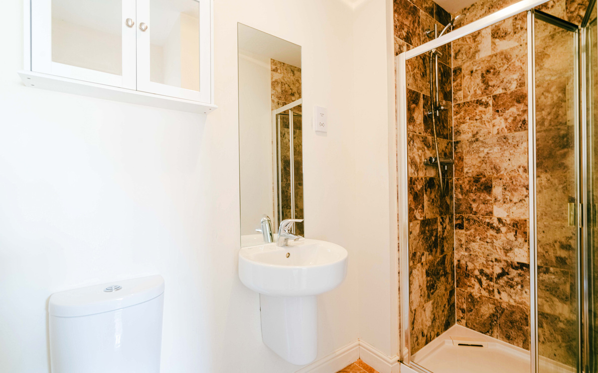 The property boasts a spacious layout, with a modern kitchen/breakfast room, a bright and airy living room, and a downstairs w/c for added convenience. The primary bedroom features an ensuite shower room, while the two additional bedrooms share a family bathroom.