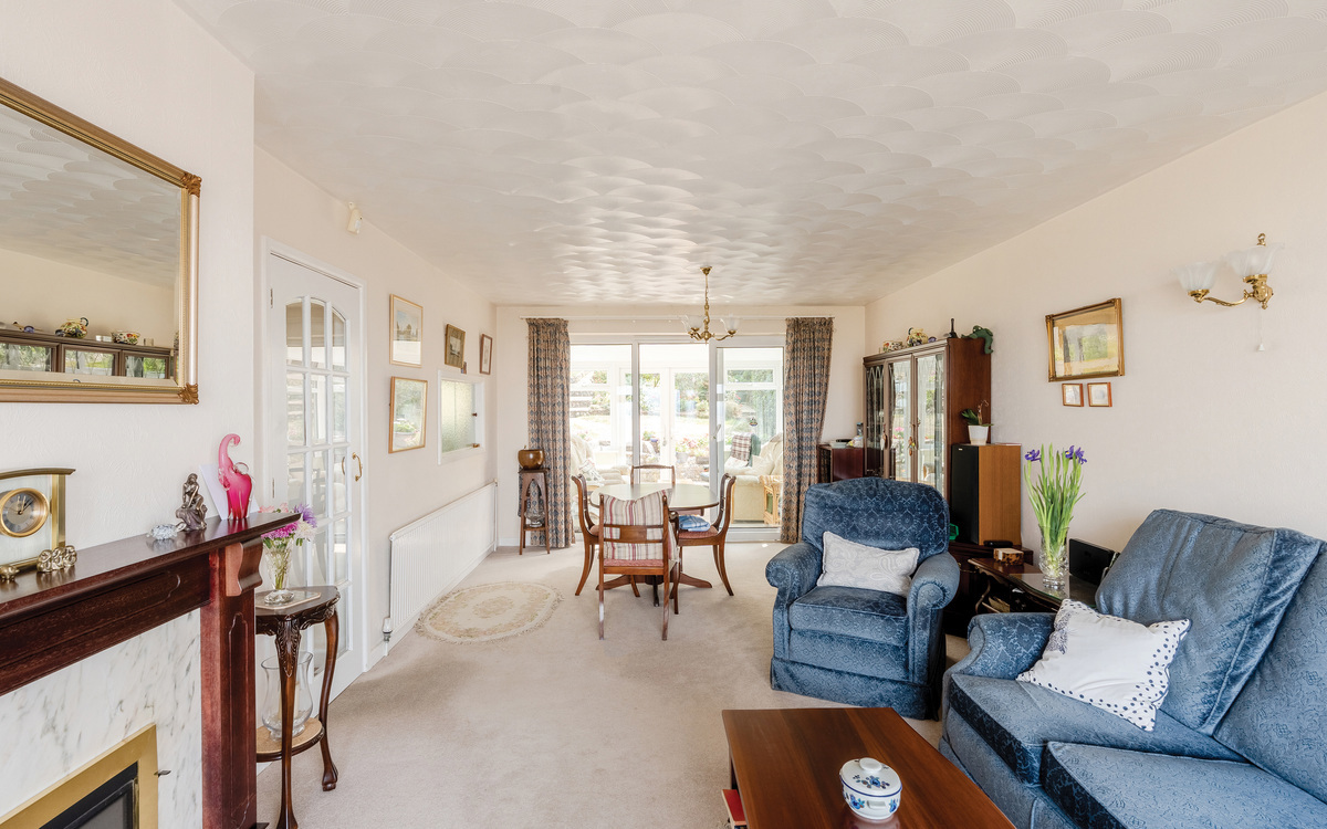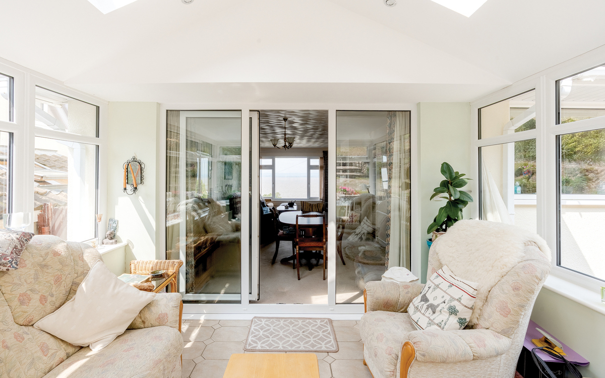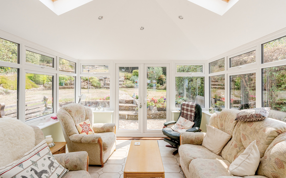 Upon entering through the porch, you will be greeted by a spacious hall that leads directly into the lounge diner, offering dual aspect views from front to back. The lounge connects to a tastefully decorated garden room, perfect for year-round use. The kitchen, located at the rear of the house, is equipped with ample cupboards and worktop space for food preparation, there is also plenty of room for additional appliances. Upstairs, there are three double bedrooms, with the master bedroom boasting built-in wardrobes. A family bathroom is conveniently situated off the hallway and there is a separate w/c located downstairs for added convenience.