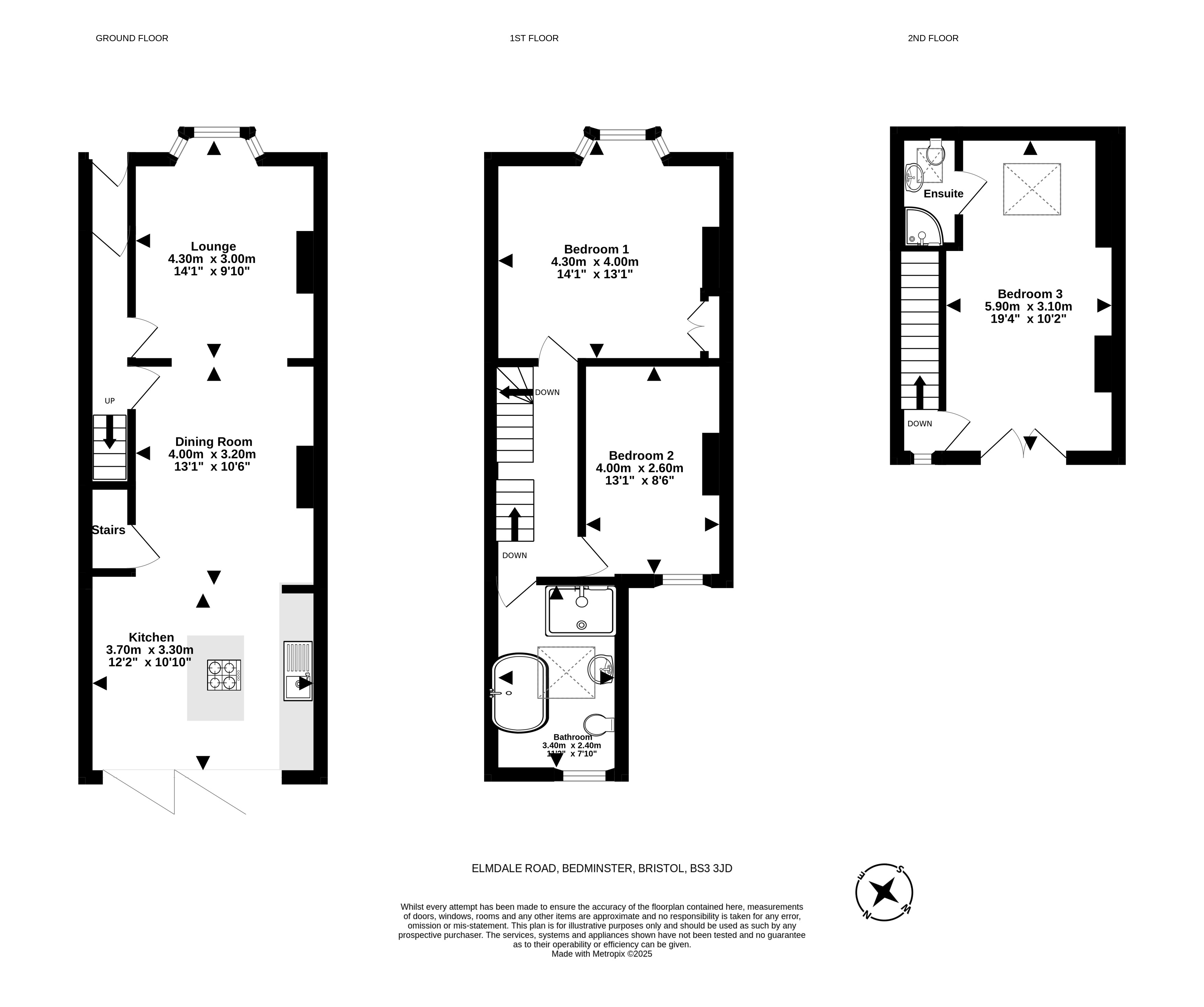 - Three bedrooms