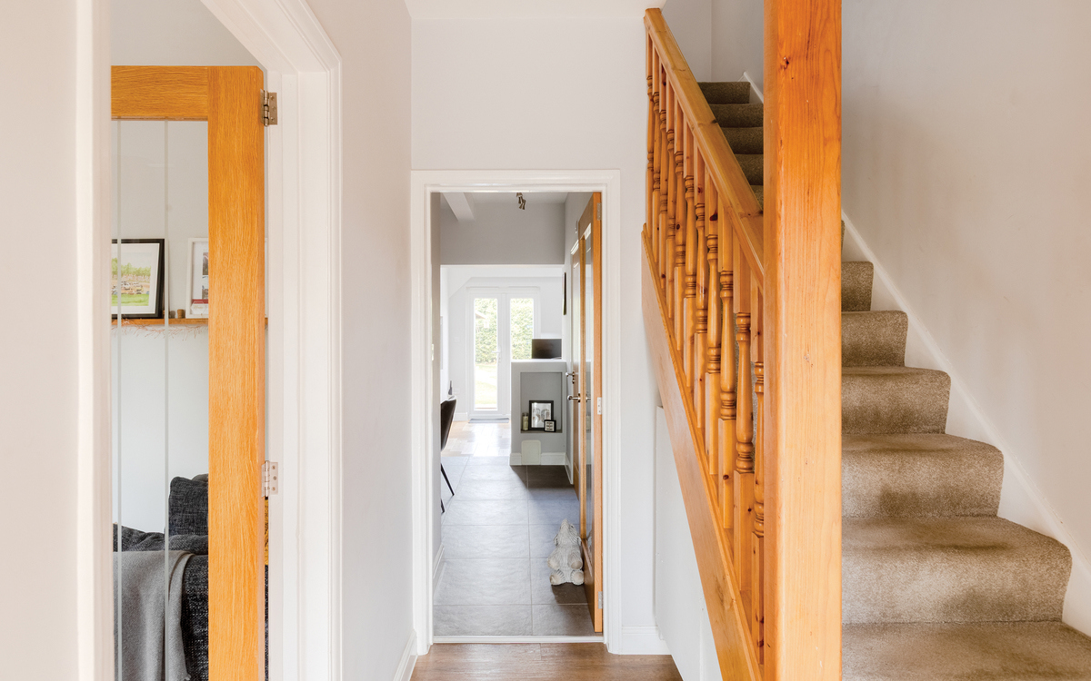 An immaculately presented and extended three-bedroom semi-detached home with a large tandem garage, offering a wonderful aspect to the front and rear of the property.