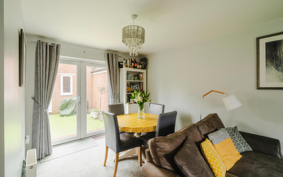 Ground floor hosts entrance hall, cloakroom, fitted kitchen with integrated gas hob, oven with space for appliances and open plan lounge/diner with double doors out to the garden. First floor has 2 well proportioned bedrooms, the master with fitted wardrobes and a modern 3 piece bathroom suite with shower over bath. Outside the garage has been converted into a versatile room, making a great office with en-suite shower room.