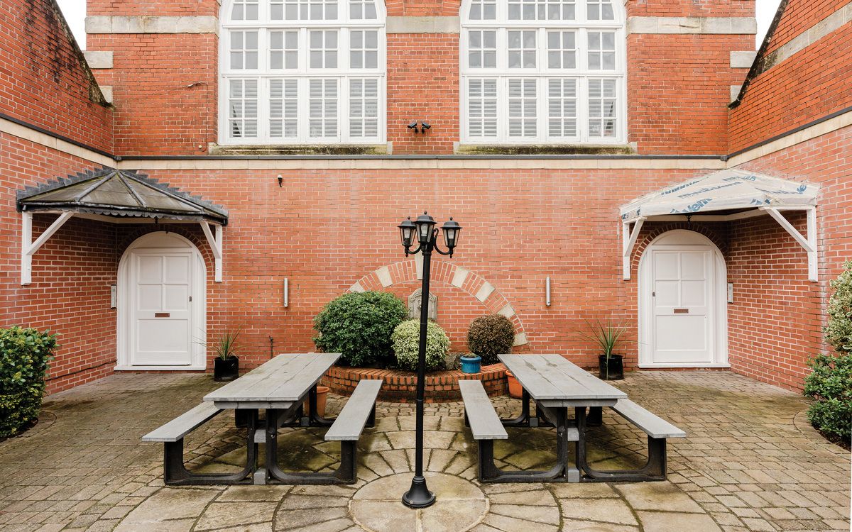 There is a courtyard with benches at the entrance to the building for residents, as well as a space running around the edge of the building where a number of residents have made a small space to enjoy directly outside of their property. There is also an allocated parking space with the property, accessed from the neighbouring Merrywood Court - there is a charger for an electric vehicle in situ.