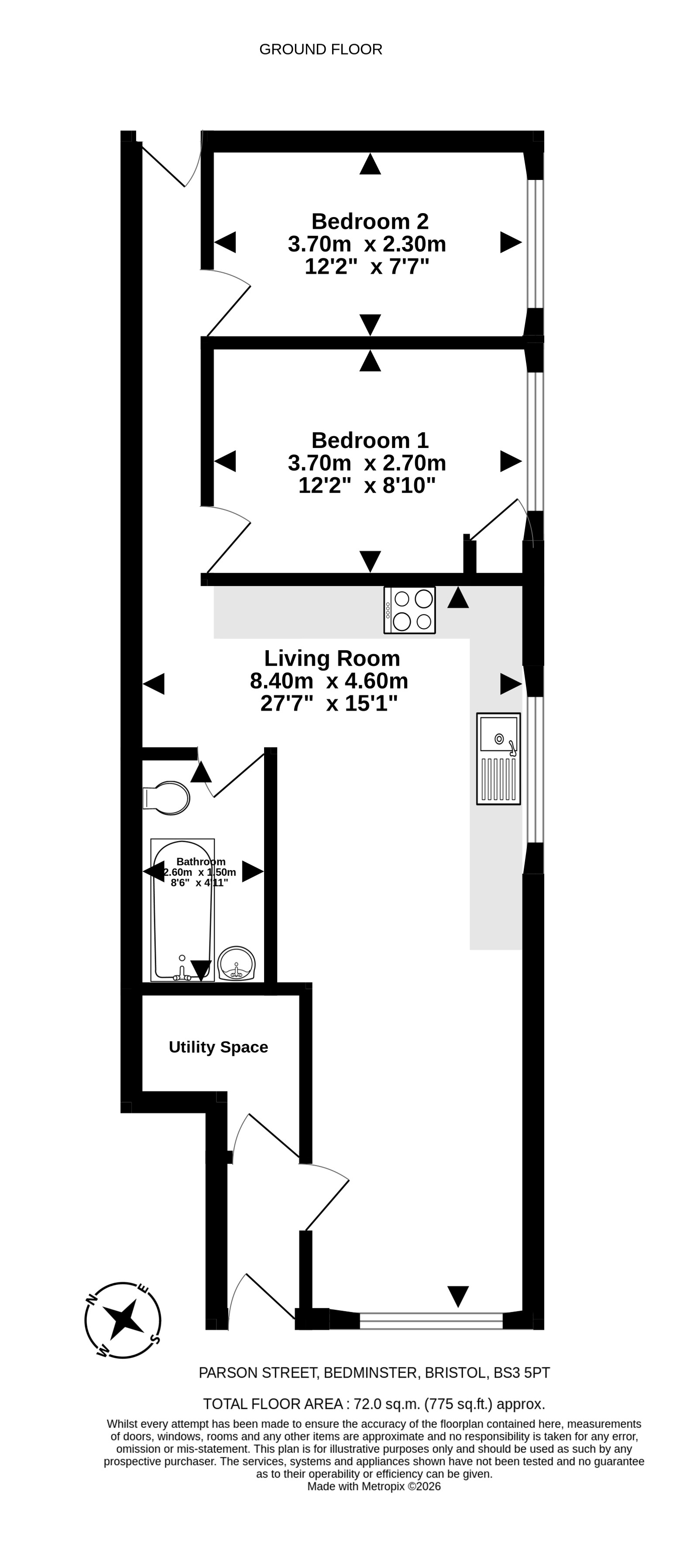 Welcome to Parson Street, where this inviting ground-floor flat is waiting to welcome you home. Step inside to find a cosy living space, a well-equipped kitchen, and 2 comfortable bedrooms. The 3-piece bathroom suite offers convenience and comfort, making mornings a breeze. The private entrance ensures a sense of security and exclusivity, while the outside space provides a place to enjoy the fresh air and relax on sunny days.