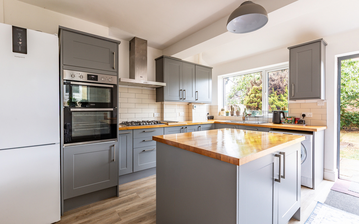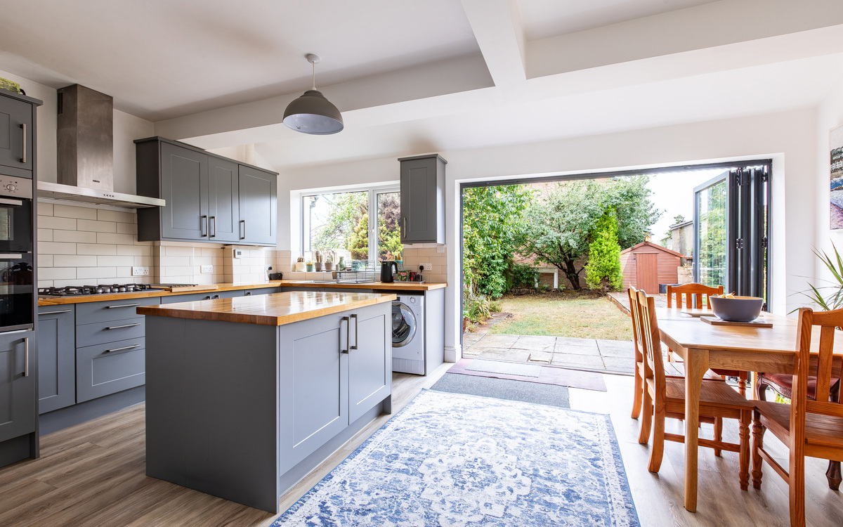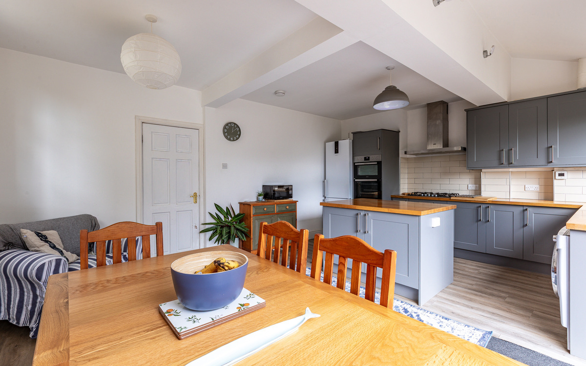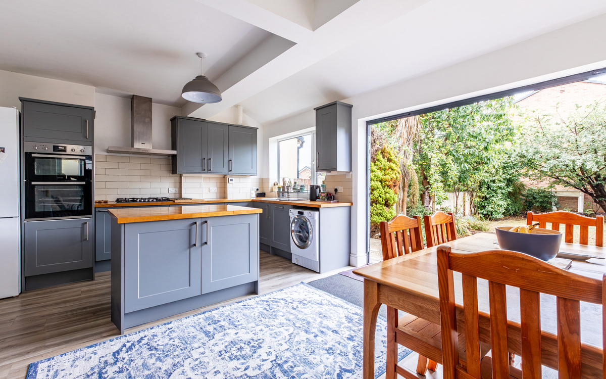 The ground floor has been extended and so offers space and practicality for a family to grow into. Off the entrance hallway is the living room, which was made larger when the rear of the house was extended, creating a generous yet cosy space with a large bay window that brings in plenty of light. The kitchen/diner is located at the back of the house and serves as a wonderful social hub, perfect for entertaining friends or enjoying daily life with the family.