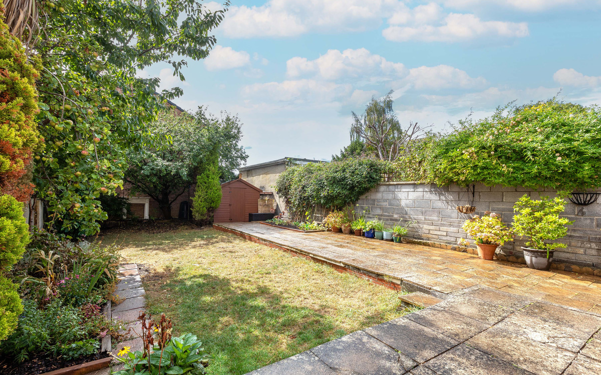 The rear garden is a highlight of the property! With a sunny south facing aspect, there is a generous amount of space available. The patio extends across the back of the house and along the boundary wall, leading to the shed. A lawn offers a safe area for little ones to play, while established planting fills the space with colour and provides a wonderful sense of privacy. There is also a side gate offering access from the front of the property.