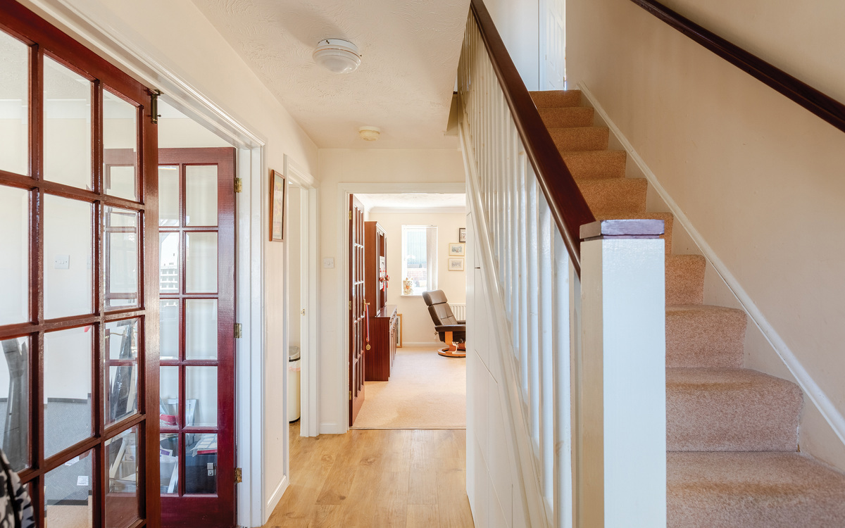 Tucked away in a corner plot is this 4-bedroom detached home with double garage, two en-suites, three reception rooms and a south-facing garden. Sold with no onward chain.