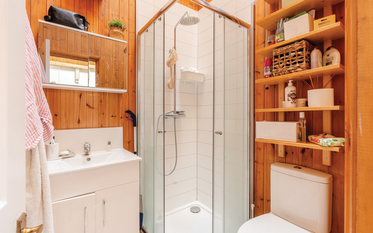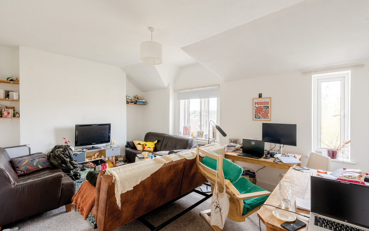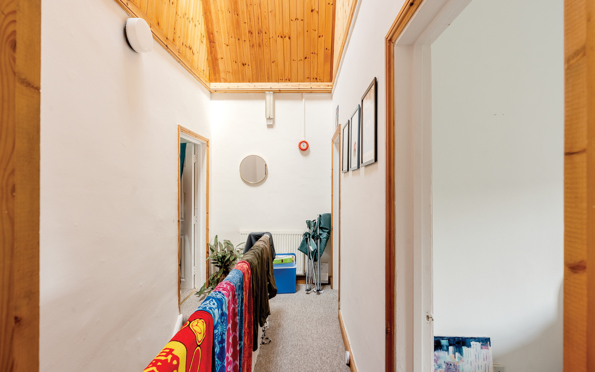You enter this apartment from the first floor, as the flight of stairs up to the top floor forms part of this property. The stairs rise to a light-filled landing, made so by a Velux window. From here, you access a full-width living space with some impressive views and a westerly aspect. To the rear is a generous kitchen and a double bedroom. Neatly tucked away in the middle is a shower room. The interior is well-maintained and offers a blank canvas. The property is being offered with no chain, giving the owners the chance to make it their own.