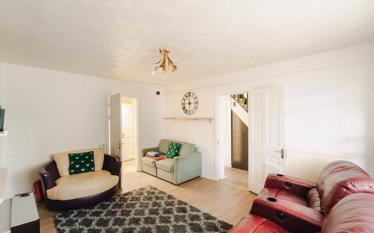 The home is well-designed and comprises an entrance hall with the living room immediately to the left and the bathroom incorporated underneath the staircase. The open-plan kitchen/diner lies at the rear of the plan and is sleek and simple, formed of matching wall and base units with contrasting worktops, with space for all essential white goods. A door provides direct access to the rear garden. Moving upstairs there are three well-proportioned bedrooms. The master bedroom is at the front of the home, whilst the second double bedroom is also a good size. Bedroom three lies adjacent and would make a good sized home office/nursery.