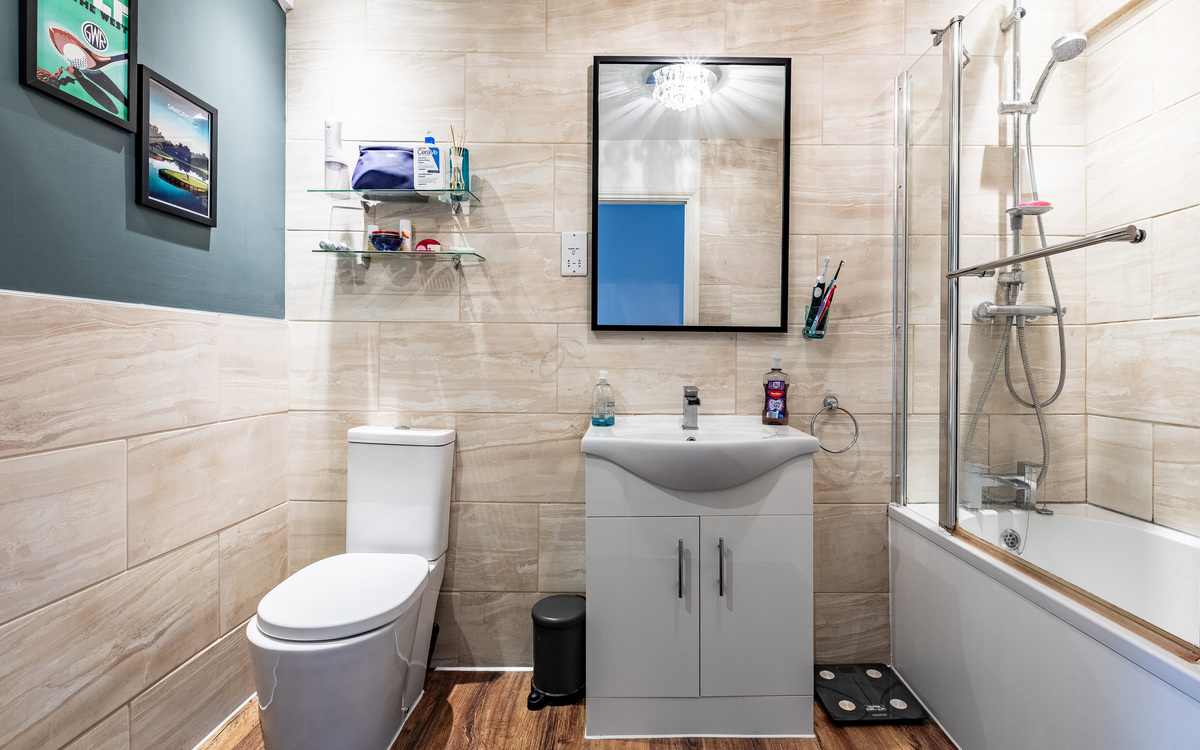 - Sleek modern bathroom