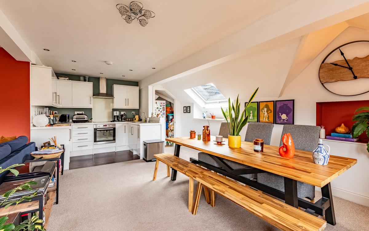 Kew Gardens is a beautifully restored Victorian villa, thoughtfully converted into a collection of fabulous and spacious bespoke apartments. The penthouse is a stunning loft residence and the largest in the development, offering spectacular views across Weston-super-Mare and Weston Woods. This enchanting apartment features impressive living spaces, including an entrance hall and a breathtaking open plan lounge, kitchen, and dining area with French doors opening onto a glorious alfresco balcony. There are two double bedrooms, two versatile study/office or storage areas, and a modern, hotel style bathroom, all finished to an exceptional standard.