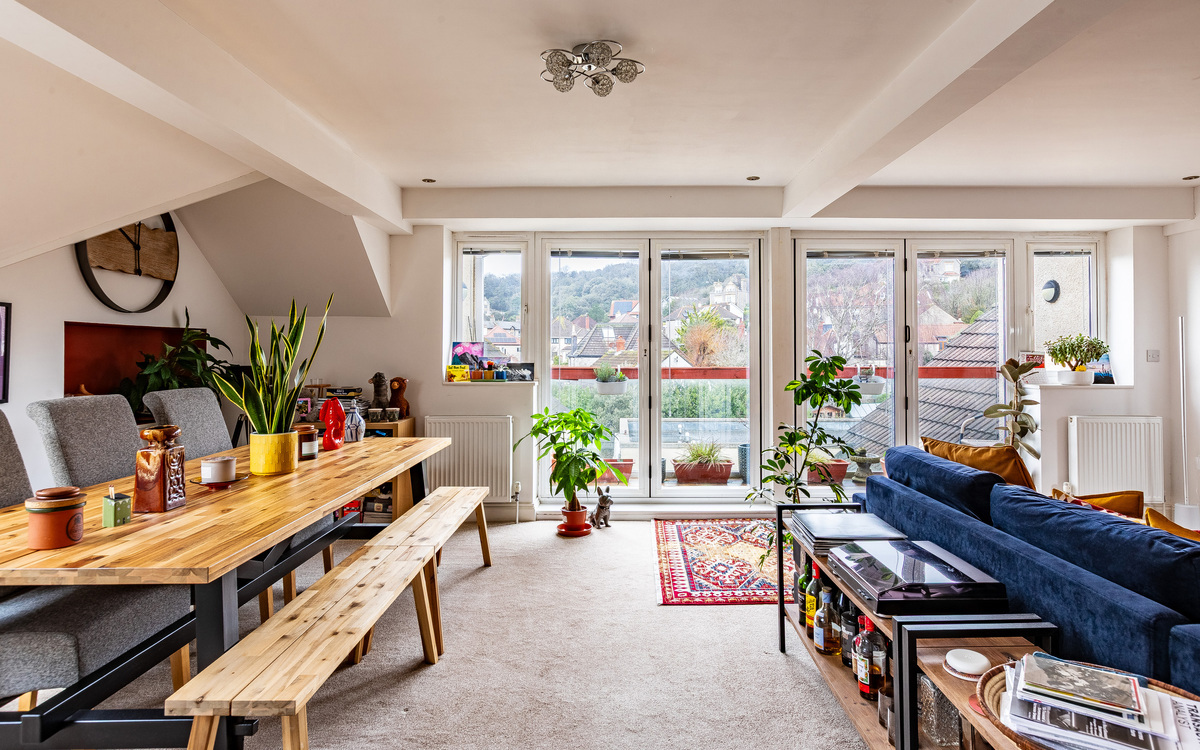 A stunning and exceptionally spacious two bedroom penthouse loft apartment in the prestigious Kew Gardens development on Weston Hillside with breathtaking views from a stunning balcony looking towards Weston Woods.