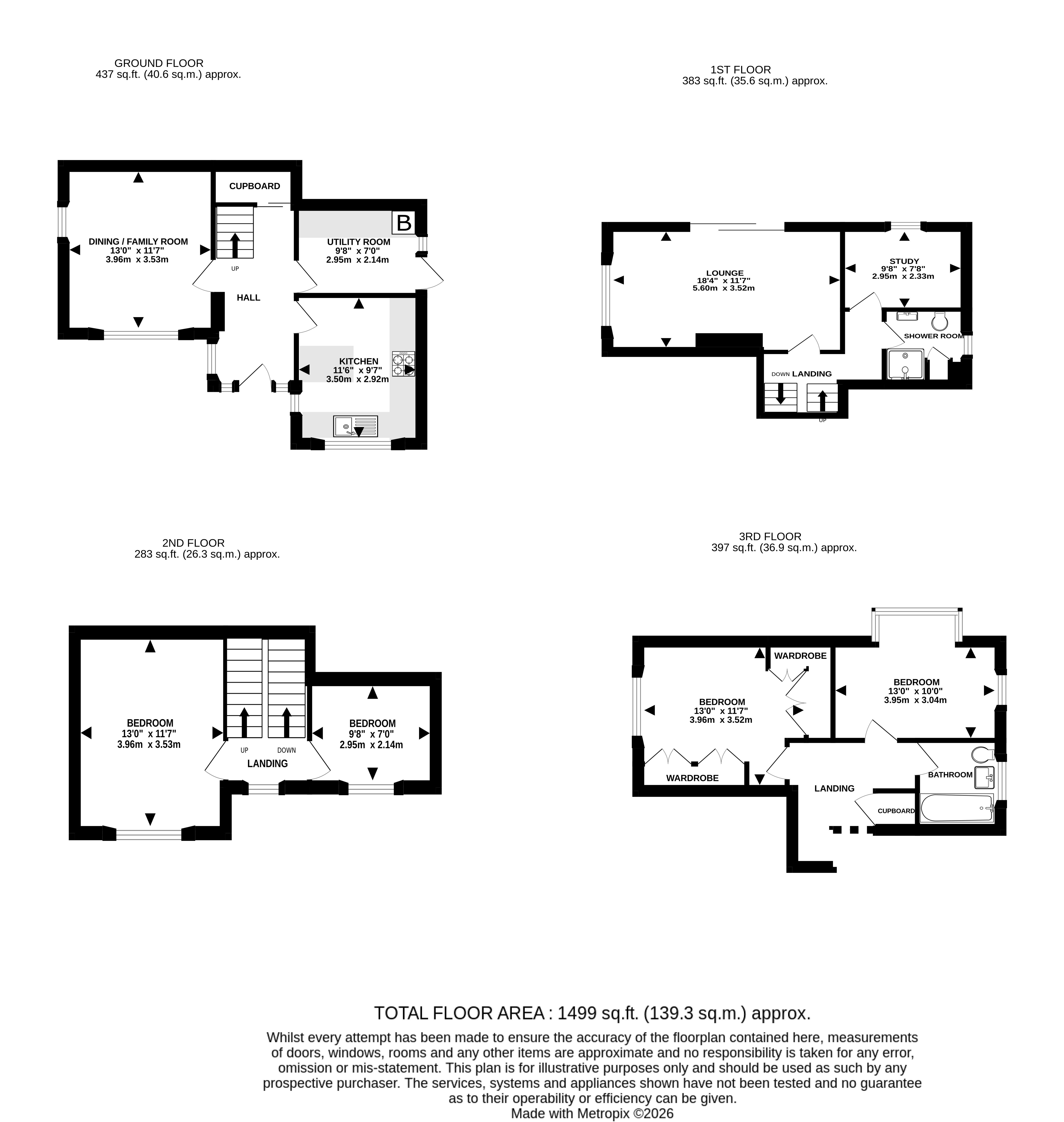 On the ground floor, you enter into the hallway and this level has the dining/family room, kitchen and utility room.